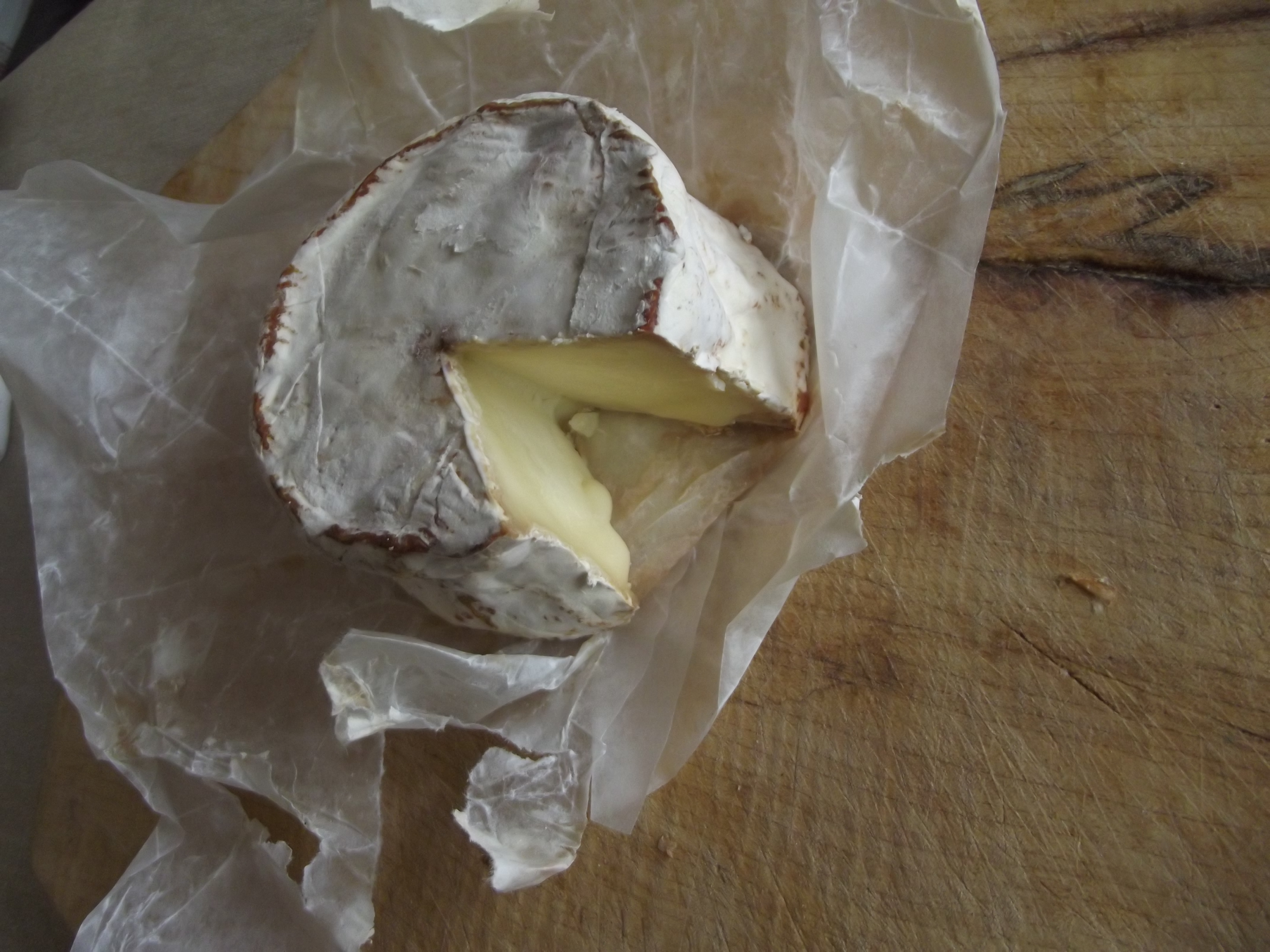 Open the wrapping and the cheese is obviously ripe, a nice aroma of straw and a faint sheepy smell. Nice clean firm crust, soft mould, altogether a pleasing looking cheese!