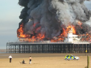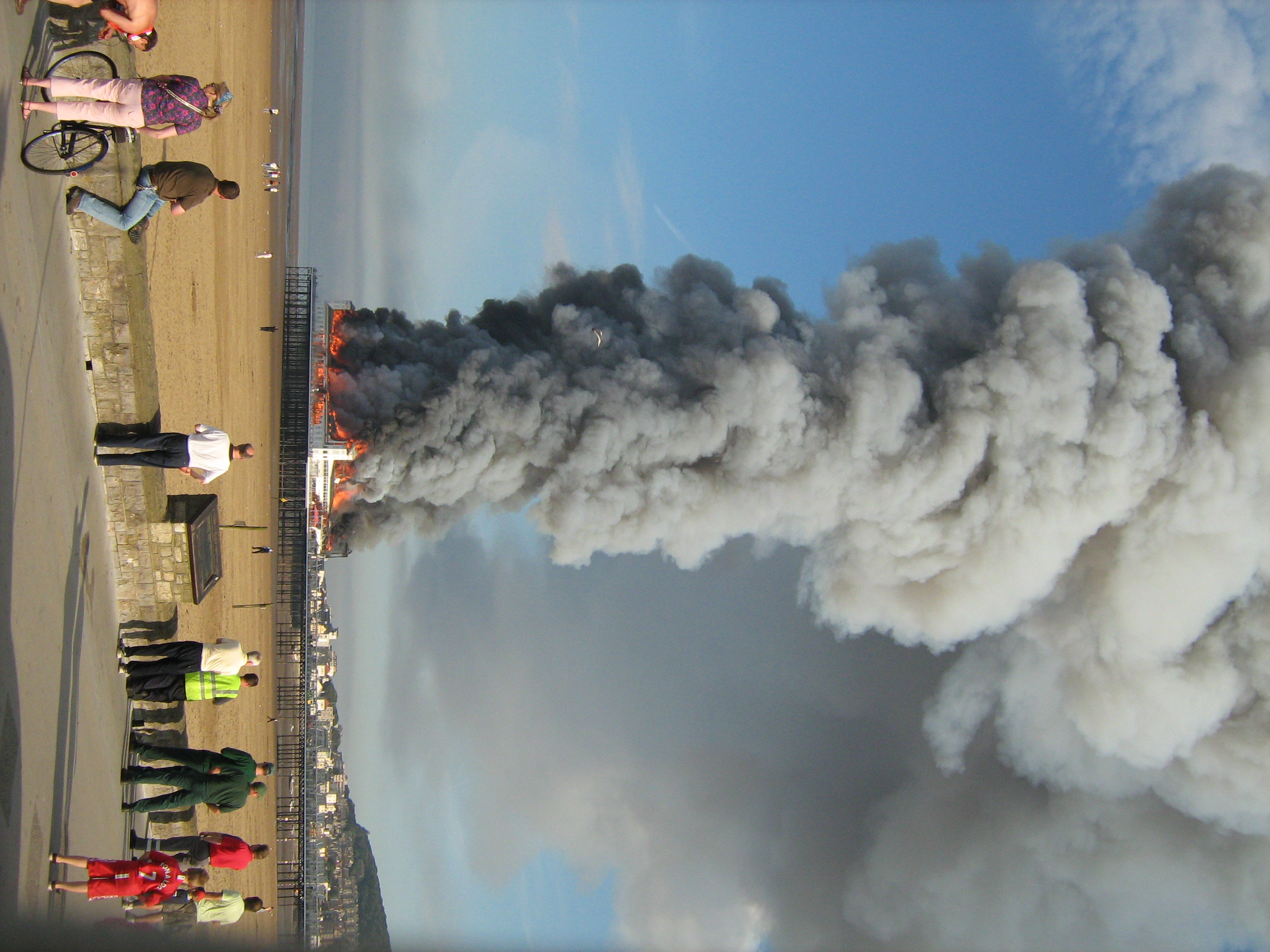 Our friends from The Netherlands always enjoy visiting us, and we enjoy visiting them and early on the morning of 28th of July, 2008, our family were getting ready to drive to Bristol Airport and catch a plane. I went to the paper-shop in our village and as I got there a neighbour came out and said “The Pier’s on fire!” And so it was! We could see the smoke billowing above the trees which separate our village from Weston.