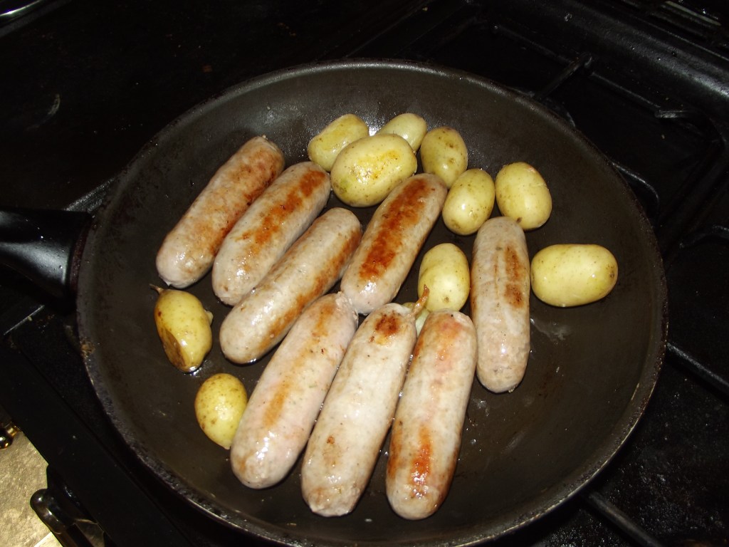Where have those spuds come from? From our garden! Boiled and keeping warm in the pan