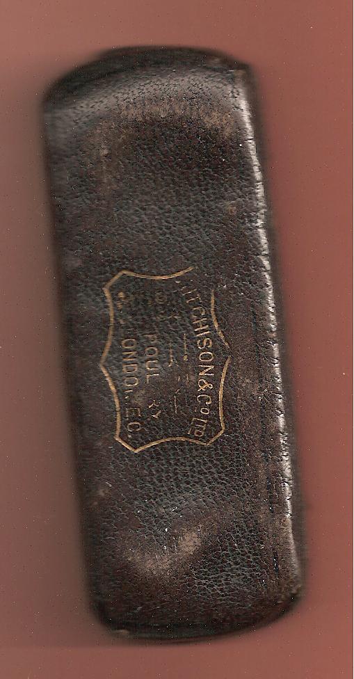 The firm of Dollond and Aitchison is a well-known chain of opticians, although it has now been absorbed by Boots. Dollonds started in 1750, but the Aitchison side of the partnership was much younger, it was started in 1889… so I know that this case was made between then and 1927 when the two firms merged. The firm of Aitchison, started by James Aitchison,  traded at Poultry, London which can just be made out on the case. There is still an opticians there, Boots, 5, Poultry, London.