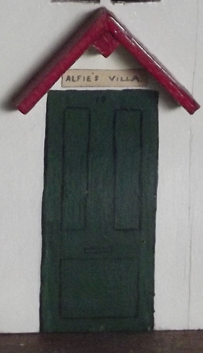 Aunty Audrey always put up decorations, including a little cottage which Uncle Geoff made, called Alfie’s Villa. I have now inherited it… the red cellophane from the windows has gone, but my husband Bari has some new red perspex to replace it.