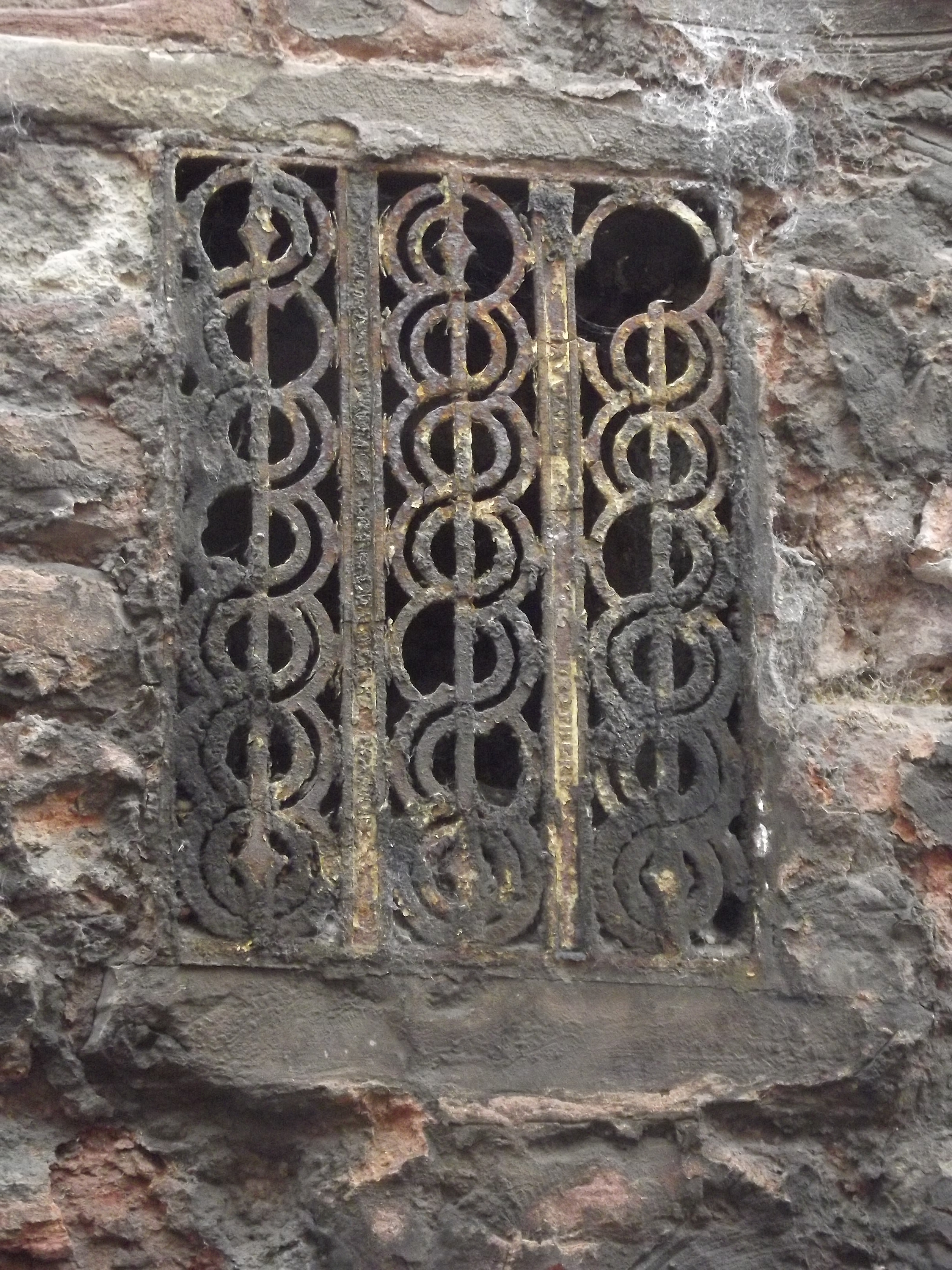 This extremely fancy and very old grill, measuring about 40cm by 60cm, maybe slightly smaller, is set into a very old wall in Bridgwater, just near the River Parrett. I’ve no idea what the building might have been; the grill looks as if it was put there for ventilation rather as a secure window so maybe this was an old warehouse when it was a busy port…. or maybe I’m completely wrong!