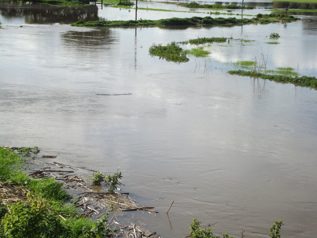 2 The line of vegetation on the right is the normal river bank, the water this side with the stick floating along is the course of the river; beyond the grassy tufts it is flood