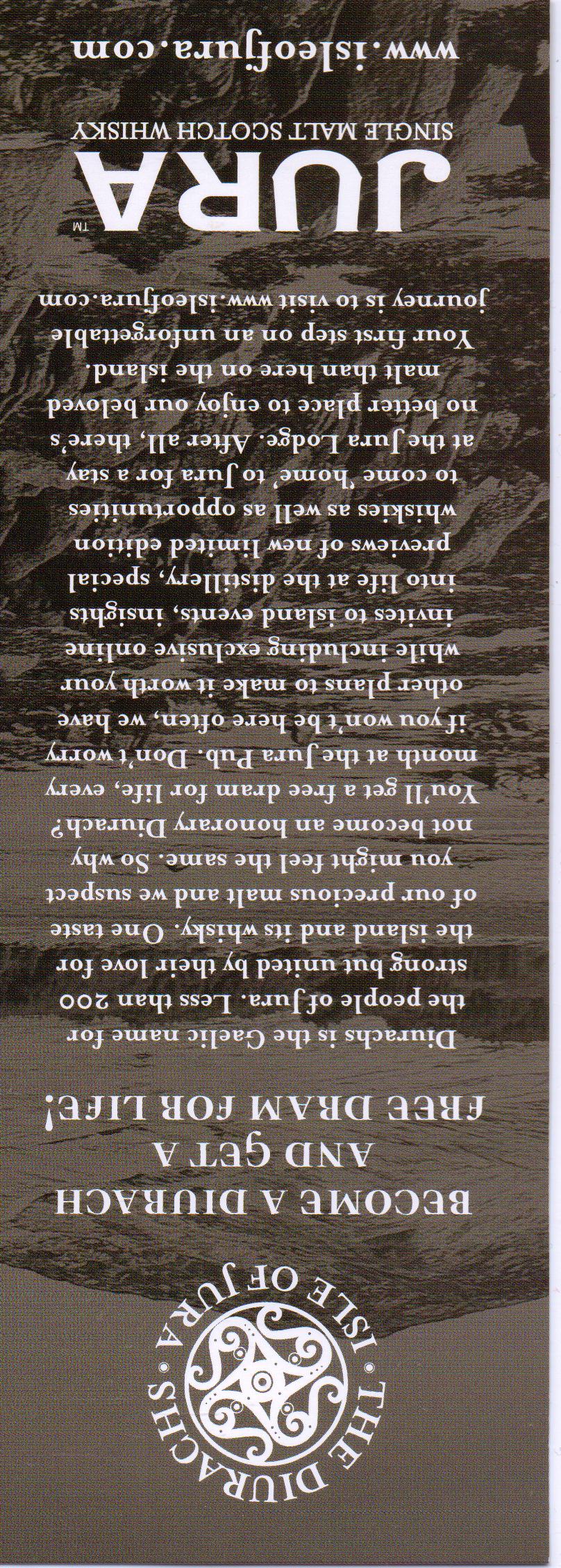 On our wedding anniversary I made up a hamper for my beloved and among the cheese, biscuits and spices was a bottle of Jura.. so when we came home from the pub last night after our customary couple of pints, Bari decided a glass of the water of life would be just the thing!
