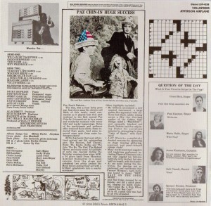I don’t know how I heard about Jefferson Aiplane because it wouldn’t have been played much if at all except maybe on John Peel’s show, which, actually, I didn’t listen to. So maybe I saw the LP in a music shop, or maybe a friend had a copy I heard… that particular part of my memory is lost. Maybe i thought the picture of Grace Slick on the front looked a little like my best friend, Frankie Partridge.