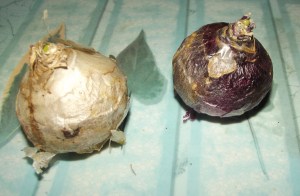 This only involves water… get the boy to place hyacinths in the glasses so you won’t come into contact with them at all, consign to a dark place and wait…