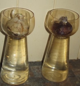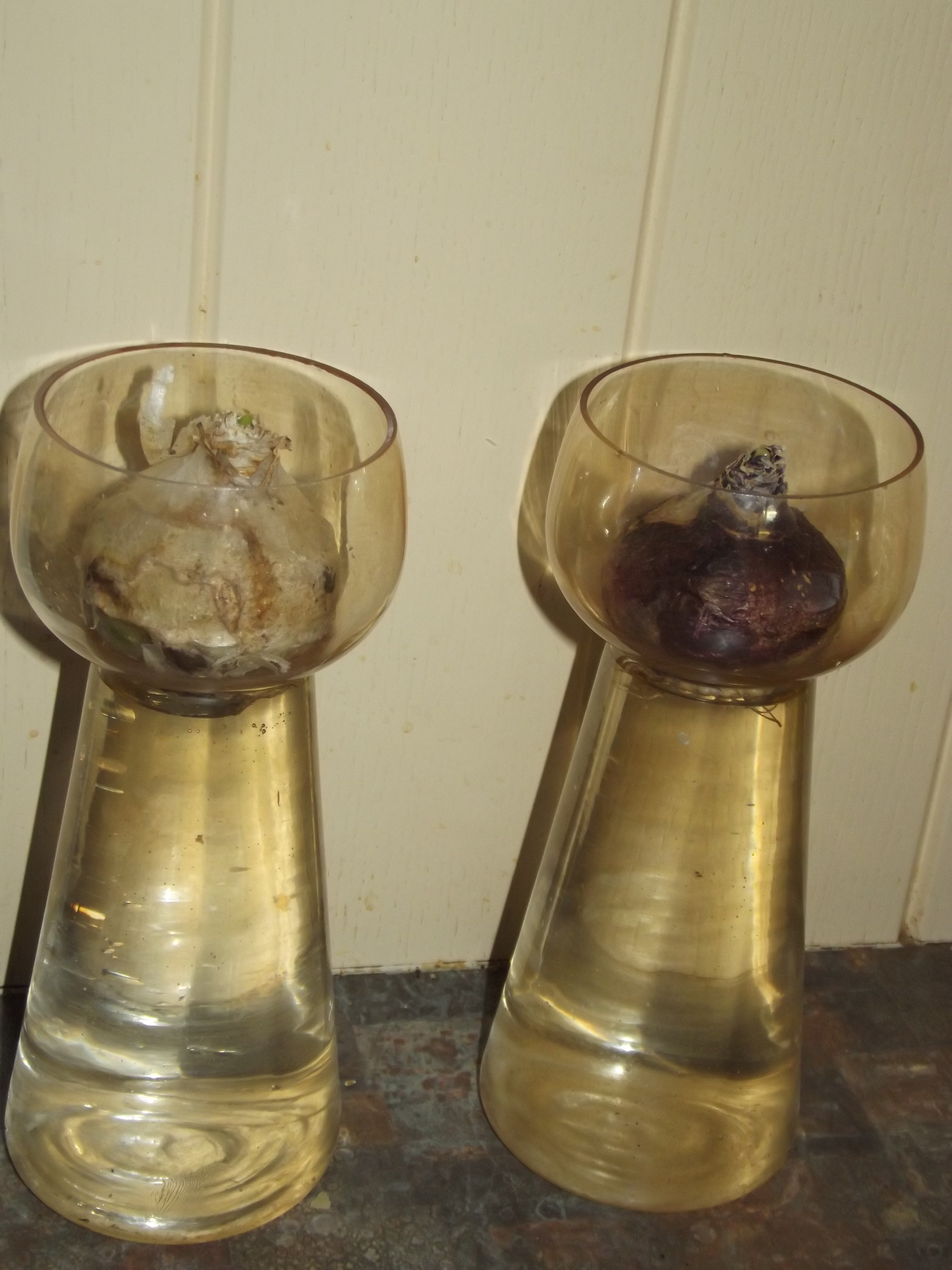 At home I filled the special glasses with water,as Monica used to and put the bulbs into the bowls.