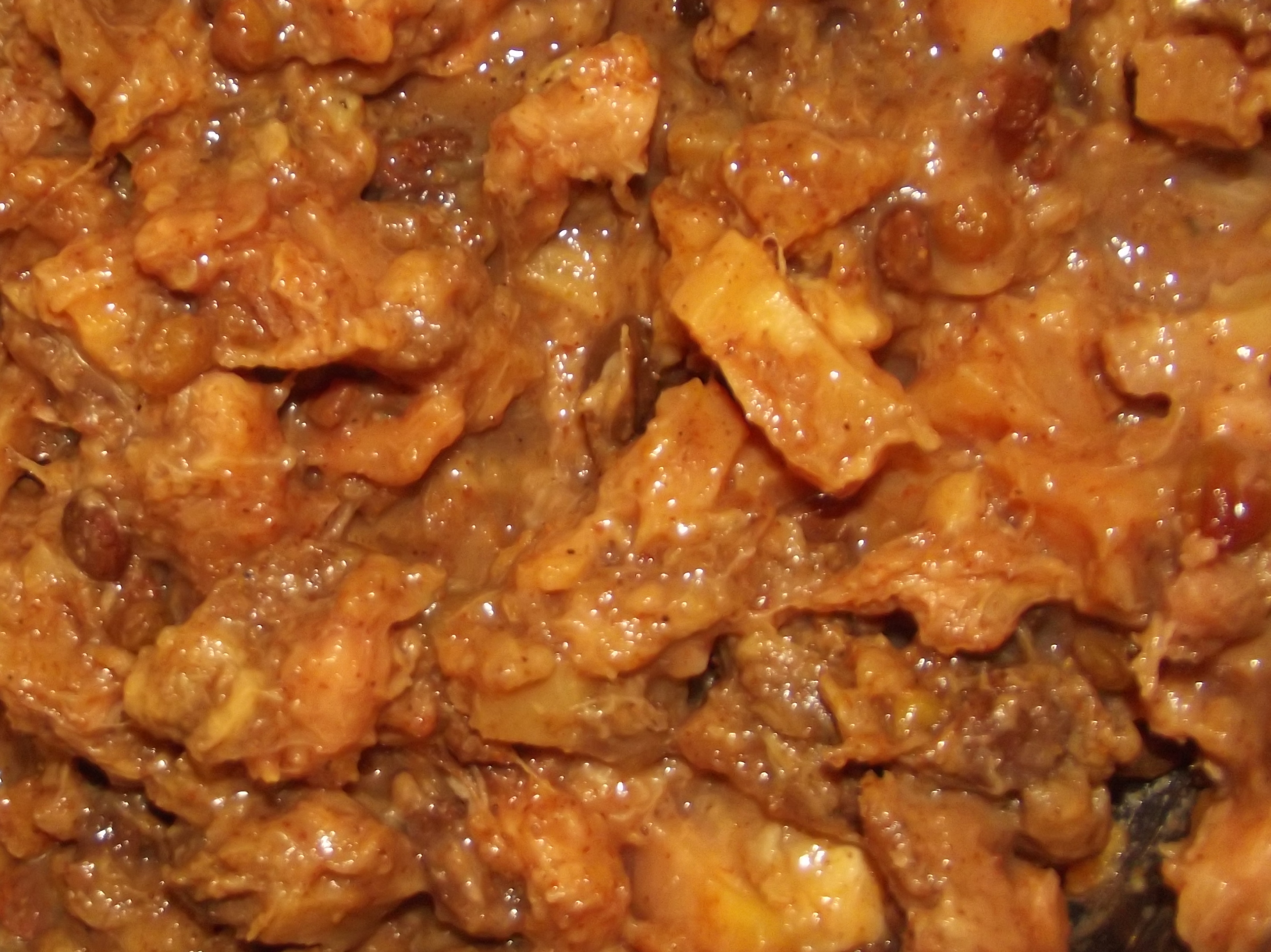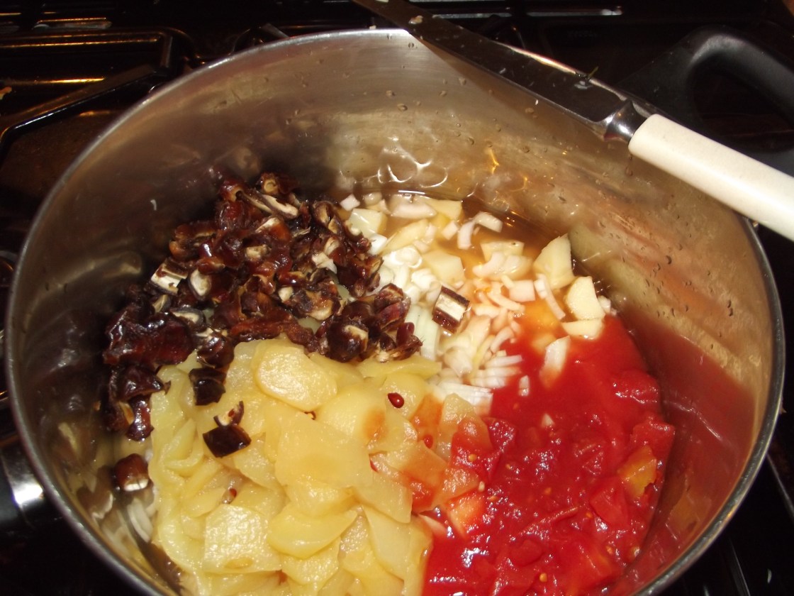 1 rounded tbsp. curry powder (for my taste this was far too small, for the quantity of fruit and vegetables I think it would be too small for anyone; I added about eight (ok maybe ten) teaspoons of ready made curry powder)