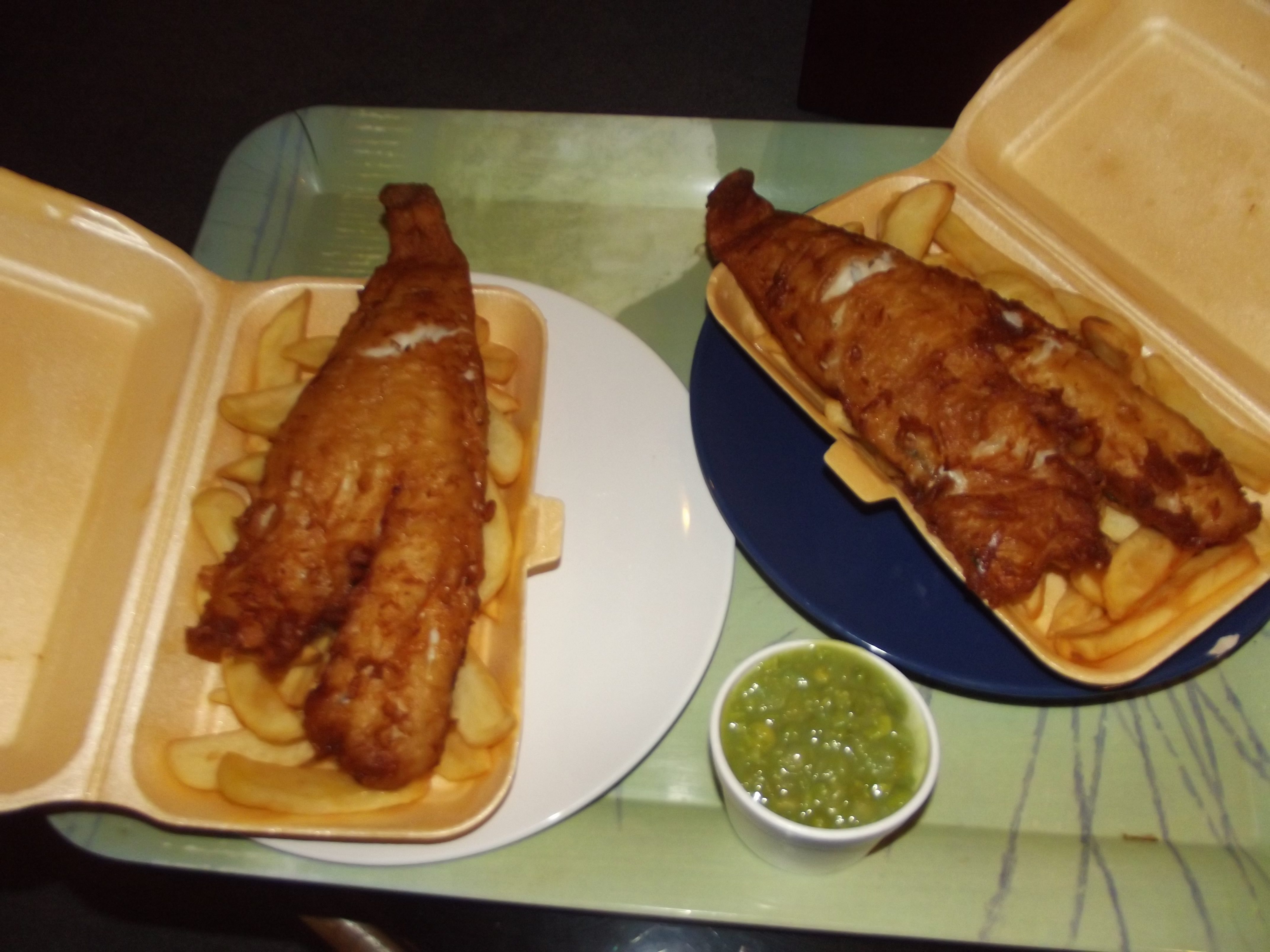 Our local pub, the excellent Dolphin,serves very nice lunches, always with a different menu, and a wonderful Sunday roast dinner. However, on Friday evening, the pub becomes a chip shop where you can get everything you would from a regular chippy. So every so often, we treat ourselves and get good old fish and chips… and mushy peas of course.