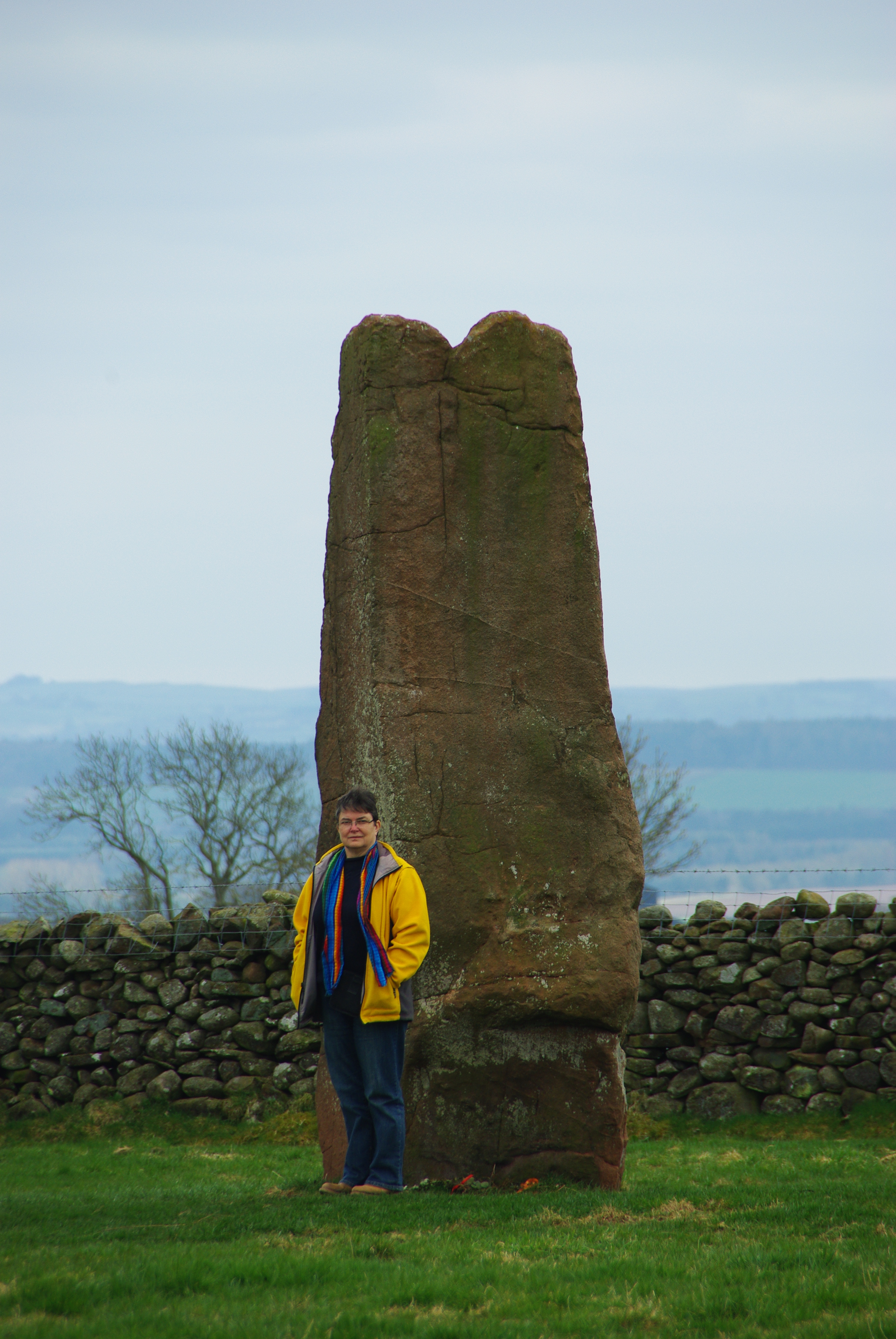 We visited on a blustery cold day in early spring, the skies were dark and lowering but the views were amazing. The stones too are amazing; it is the sixth-biggest stone circle in the British Isles,and there are fifty-one stones although only twenty-seven of them are still standing.It is more of an oval shape actually, not a circle, and measures 350 feet in diameter. There may have been more stones originally, maybe as many as seventy.