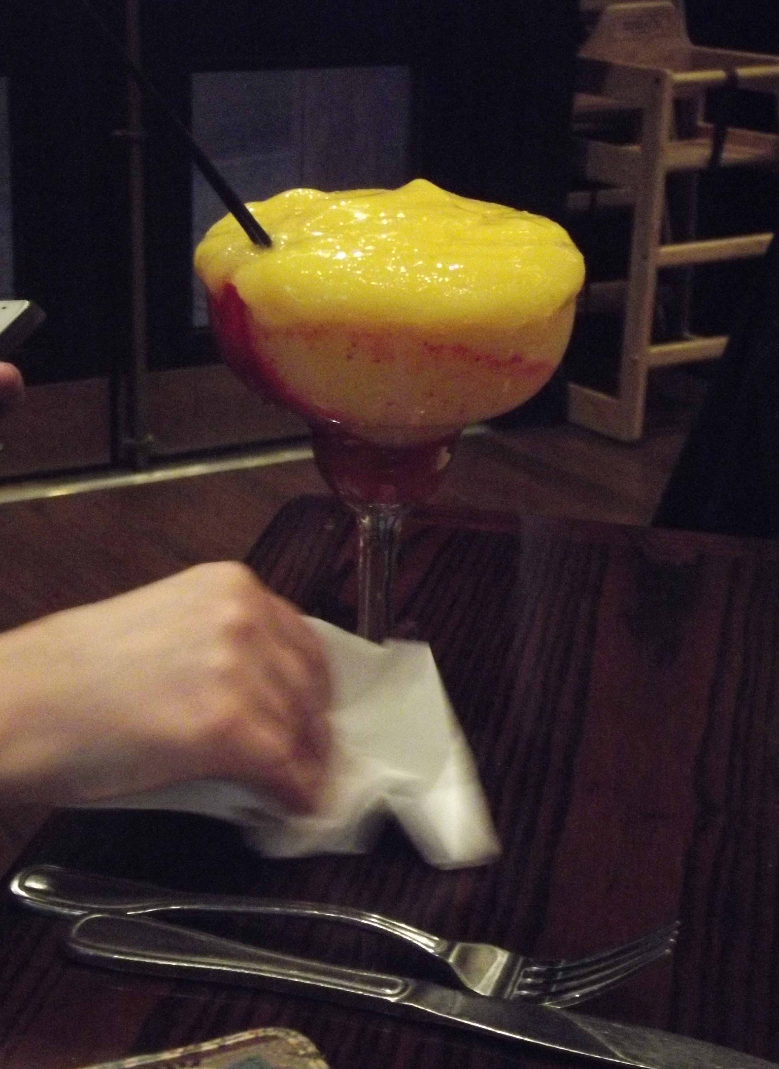 On our recent visit to Manchester we had to visit the Hard Rock Café and since it was a special occasion we had to have some cocktails; I had what I think was a Lovely Rita… or maybe it wasn’t but it was Tequila and Cointreau (had to have tequila because it was Patrón and we were seeing Raul Malo that night) and utterly delicious. Jenna had something else which looked rather nice with fruit, Rory had a magnificent blue thing which I guess was with blue Curaçao, and Hannah had a Groupie grind… yes really, and it wasn’t even alcoholic!