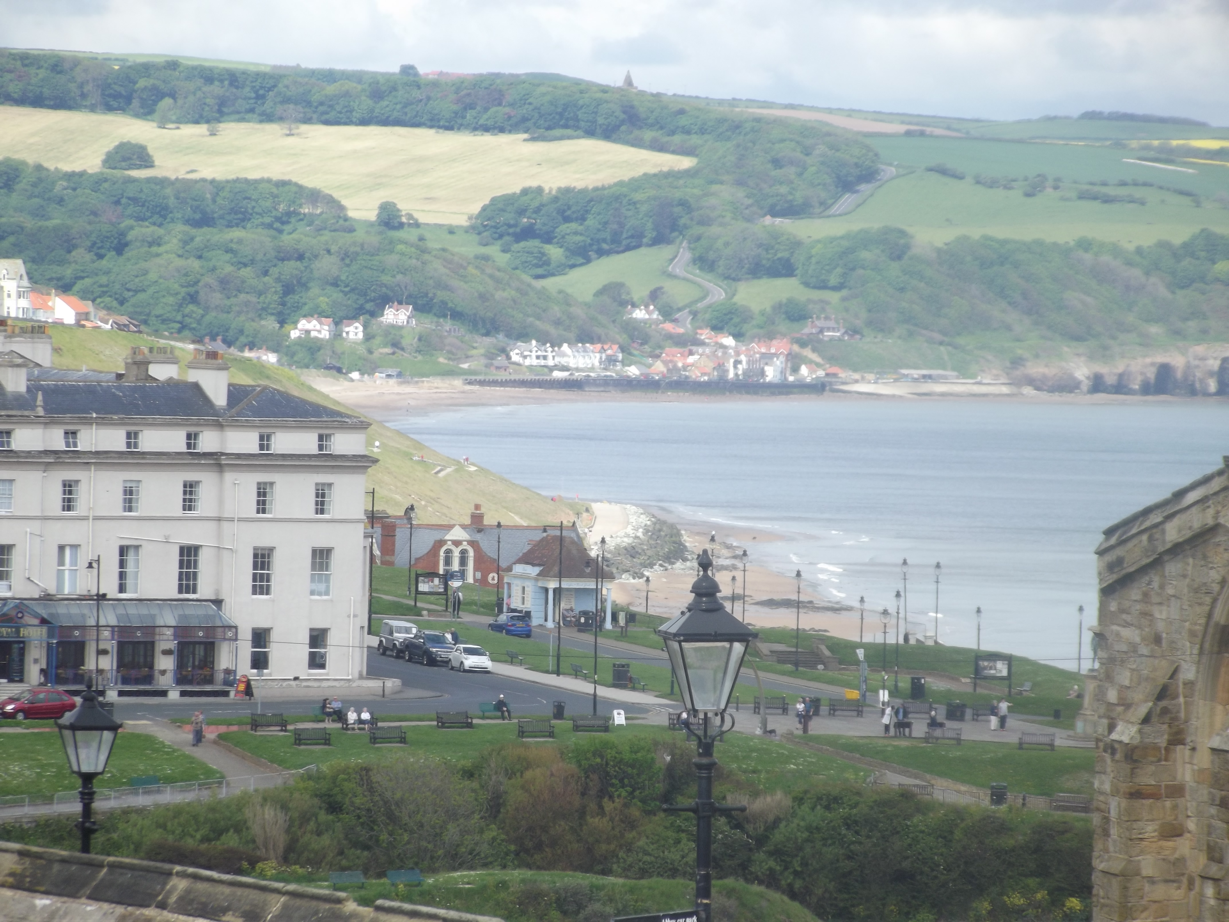 View across the bay from Whitby Abbey to the little village of Sandsend, our cottage is one of the white buildings