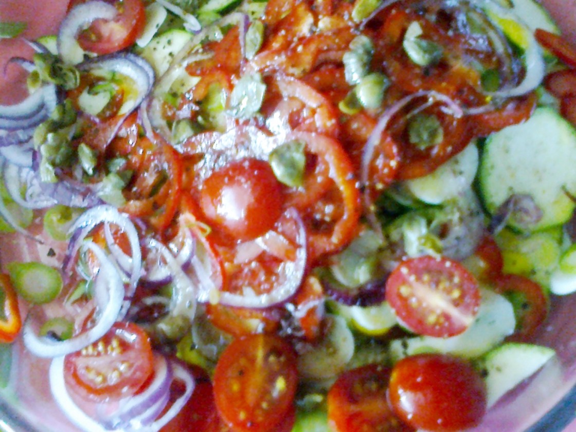 12:30 home for a salad of lettuce, red onion, cucumber and red pepper, rock salt, pepper, olive oil with some habanero chillies and balsamic vinegar, some feta cheese and a crust of brown bread, cup of tea