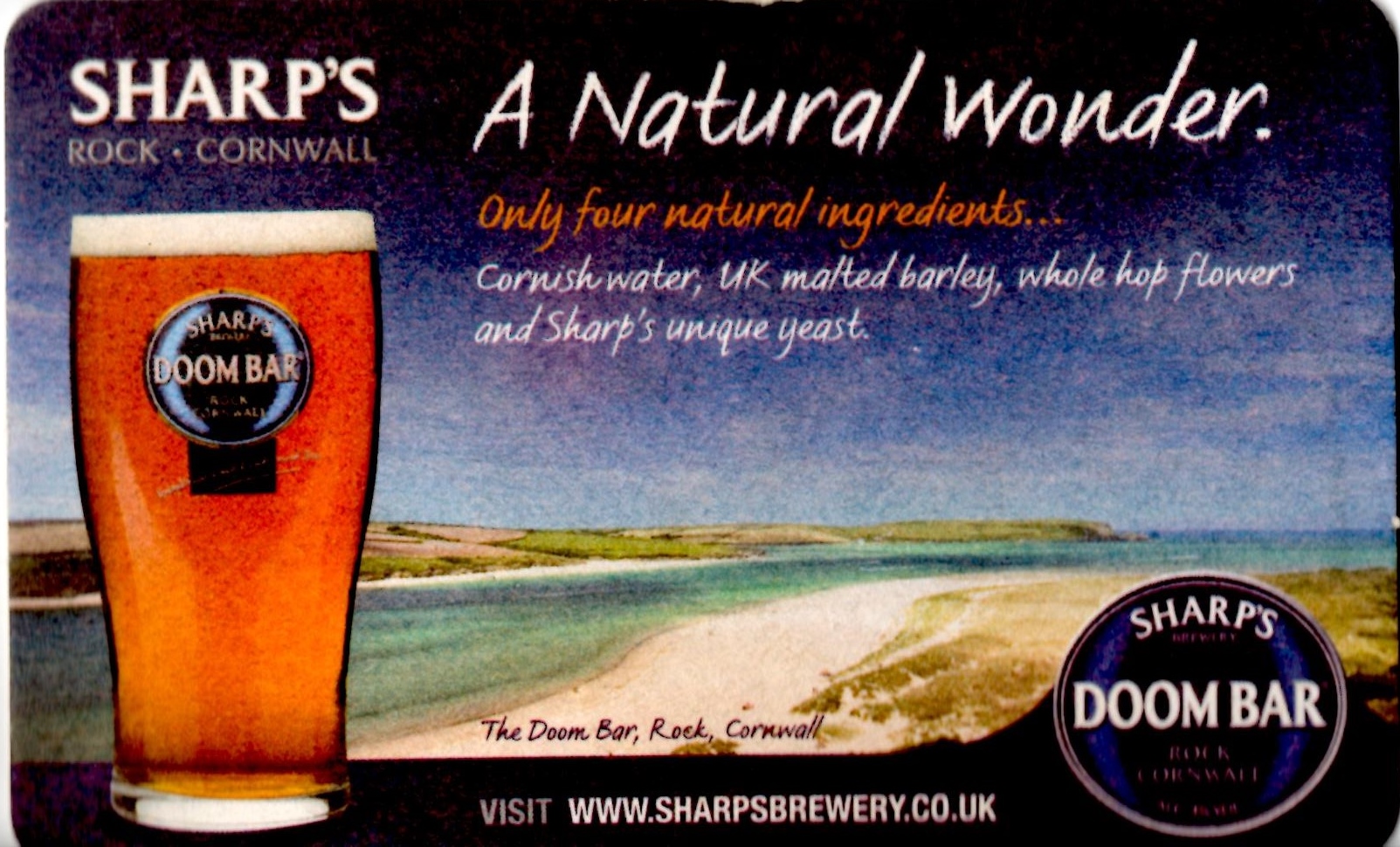 As well as the estimable otter Ale, the Dolphin, our local pub, also serves a well-kept brew from Sharp’s brewery, Doom Bar. It sounds a wonderful name, doesn’t it, redolent of many old tales, myths and legends. It gives a little shiver every time I ask for ‘A pint of Doom, please’ expecting something almost Tolkienesque! Sharp’s brewery is in Cornwall and Doom Bar is an actual place although you would be unfortunate if you visted it because it is a sandbank in the estuary of the River Camel on the north coast.