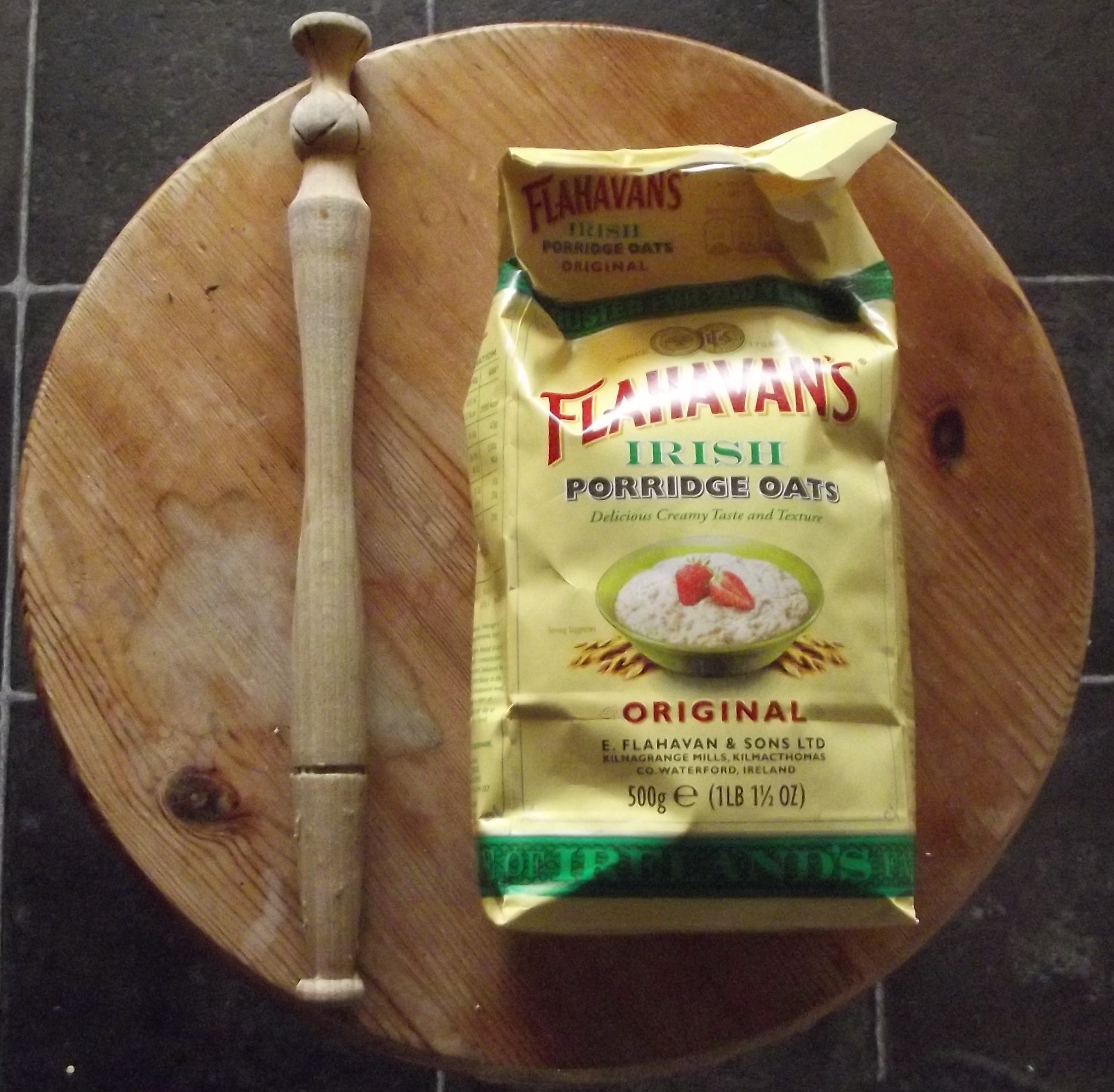 A spurtle and porridge… can you guess what you might use the spurtle for? Yes, stirring the porridge! I foolishly didn’t think to ask which was the stirring end, so for many years I was in fact stirring upside-down… I don’t think it affected the taste of the porridge! In case you’re wondering, the holding end is shaped like a Scottish thistle, the slightly rounded end is the stirrer!