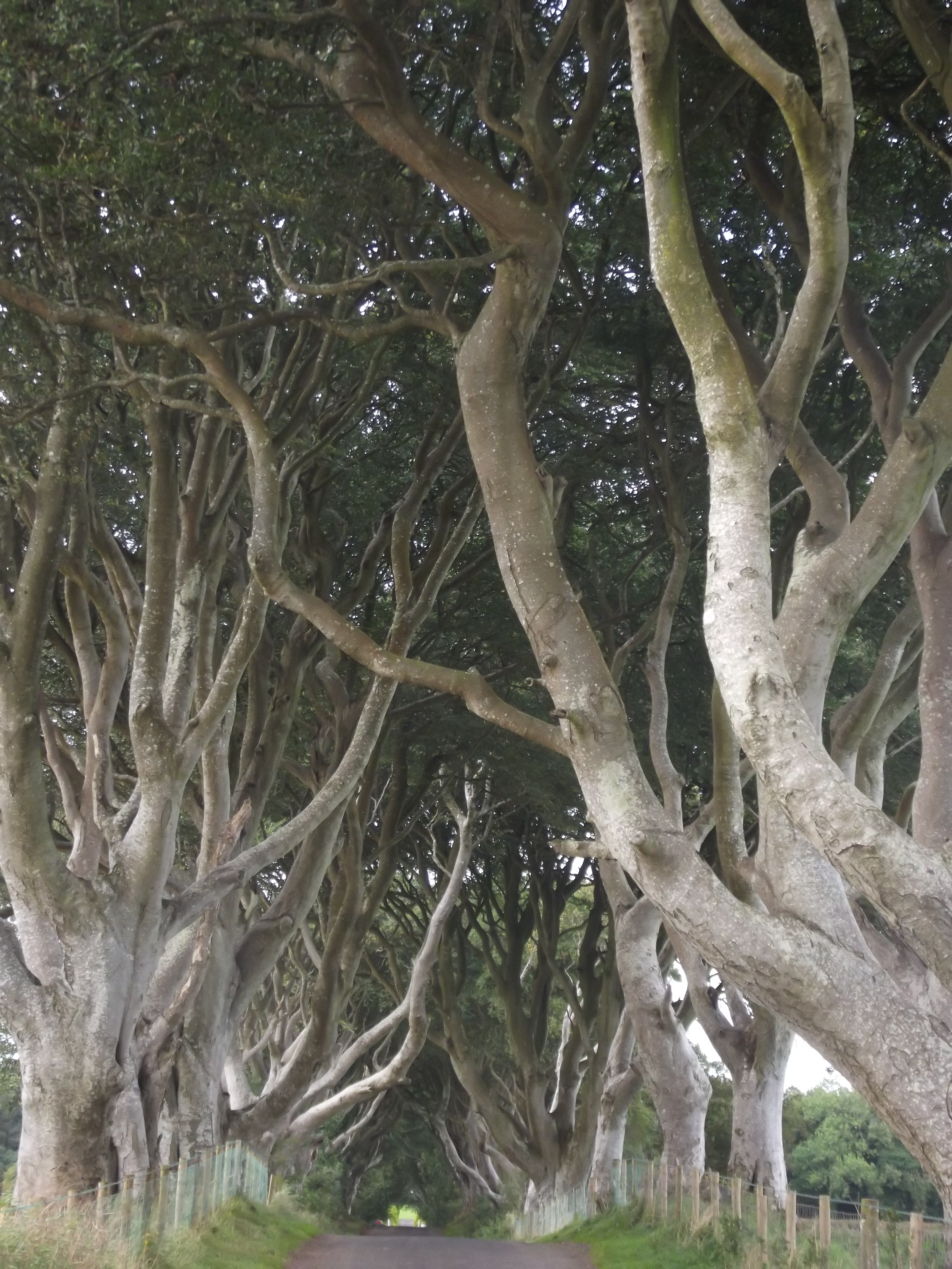 Sometimes you visit a place and you don’t have to have much imagination to find it atmospheric. Such a place is dark Hedges near Armoy in County Antrim; we visited there early afternoon on a bright through sunless day. Even with light streaming in through the trees and the occasional passing car it was an extraordinary place and it was easy to feel a slight raining of the hair on the back of the neck and a few goose pimples rising on the skin…. I’d like to visit at a different time, early morning maybe, or evening, or even drive along it at night… I don’t think I could venture there on foot in the dark, my imagination is too wild!