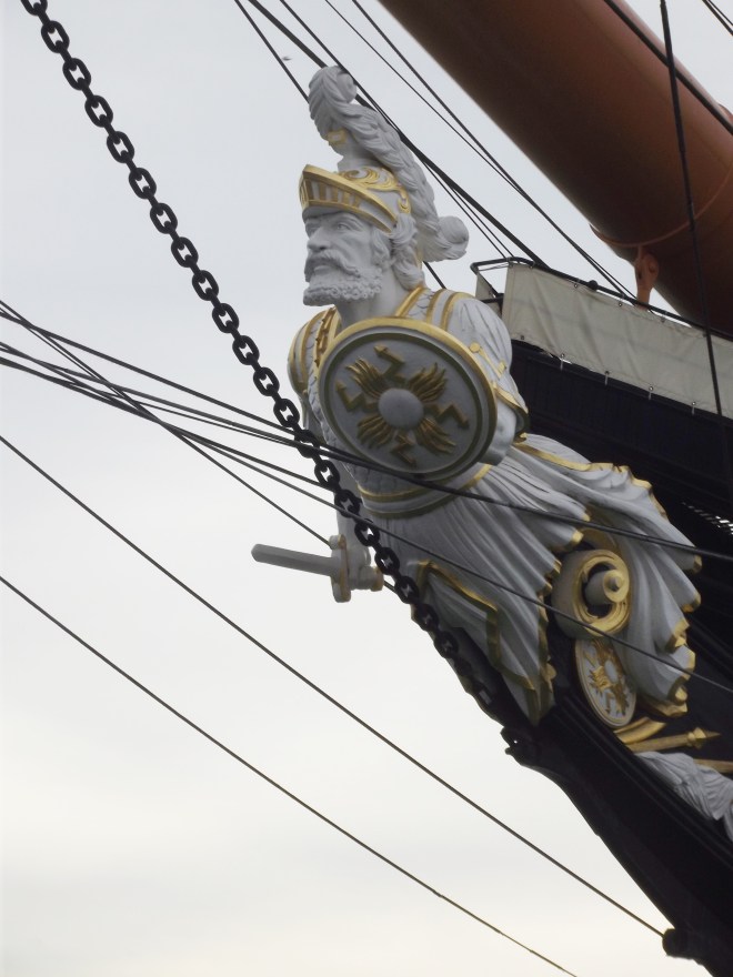 Our own ancestors must have dreaded the sight of the long-ships charging across the water, the dragon leading the Vikings to conquer pillage and steal and  new lands. Other northern European seafarers had fish or dolphins or snakes. These early figures were carved into the prow but as the design of ships changed and developed and ships became bigger and more complicated, the figurehead appeared on the bowsprite (the piece of wood sticking out at the front of the ship)