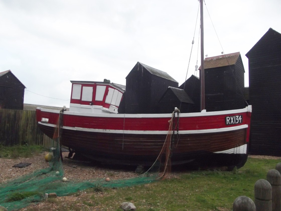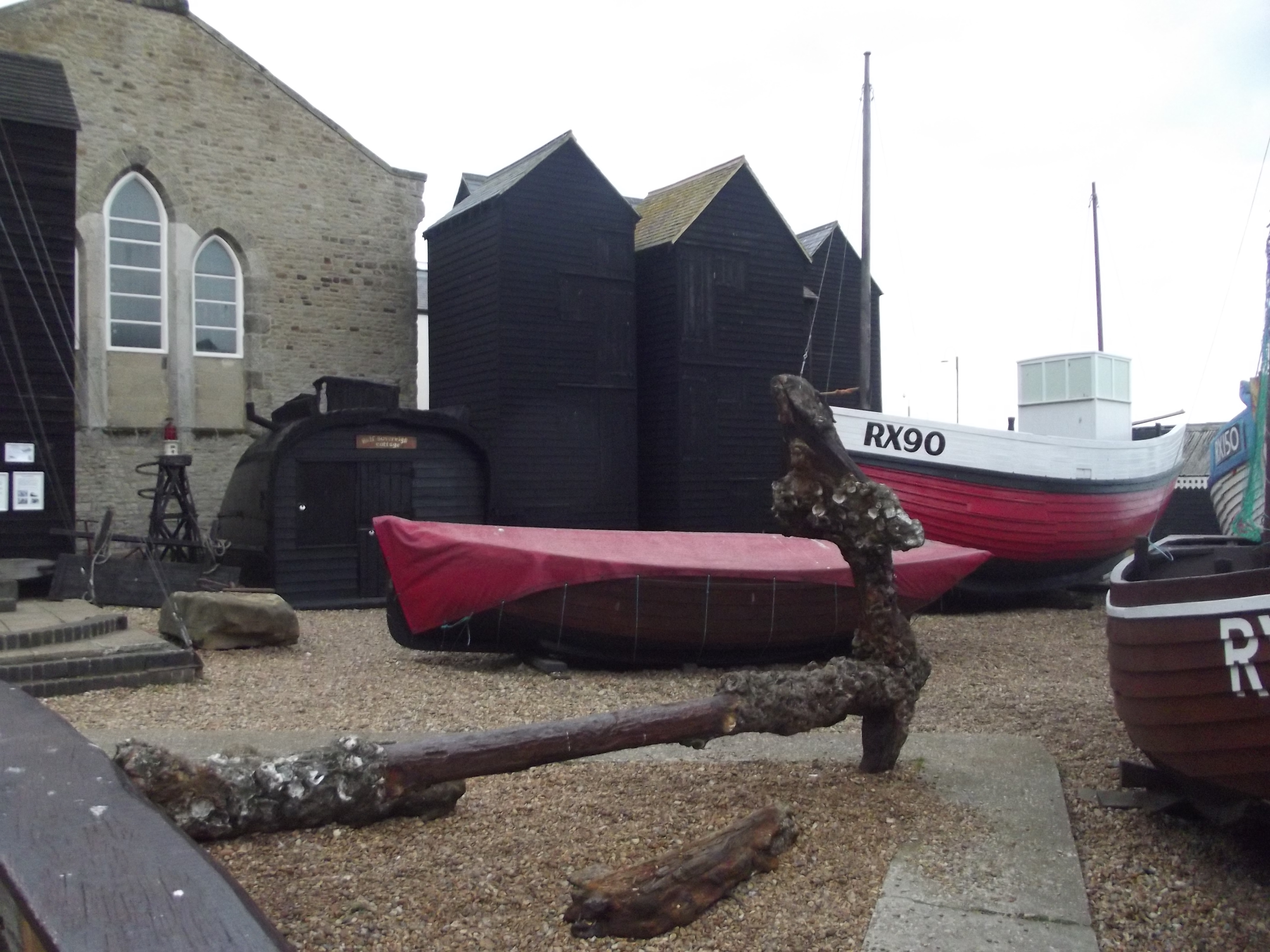When I heard what they were I assumed it was for hanging up nets to let them dry, like kippering herring, but the nets and other gear made from organic material would usually be dried on the shingly beach first and then stored. They were known as ‘shops’ used in the same way the word ‘workshop’ is used. There have been fishermen’s huts on the beach, known as the Stade, probably as long as there have been ‘modern’ fishing boats but because of the weather and the tides, the huts had to be able to be rebuilt if they were damaged, and many of them were elevated on legs or stones so the sea could flow in beneath them, although apparently some had wheels. Sometimes the shed was an old fishing boat upended: