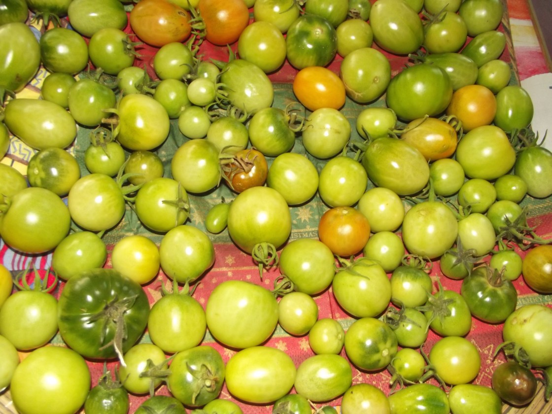 So what to do with the green tomatoes I have? I guess some of them will ripen, but there are an awful lot which won’t. I came across an unusual recipe for mincemeat which we do eat at Christmas time… so maybe this is a possibility?
