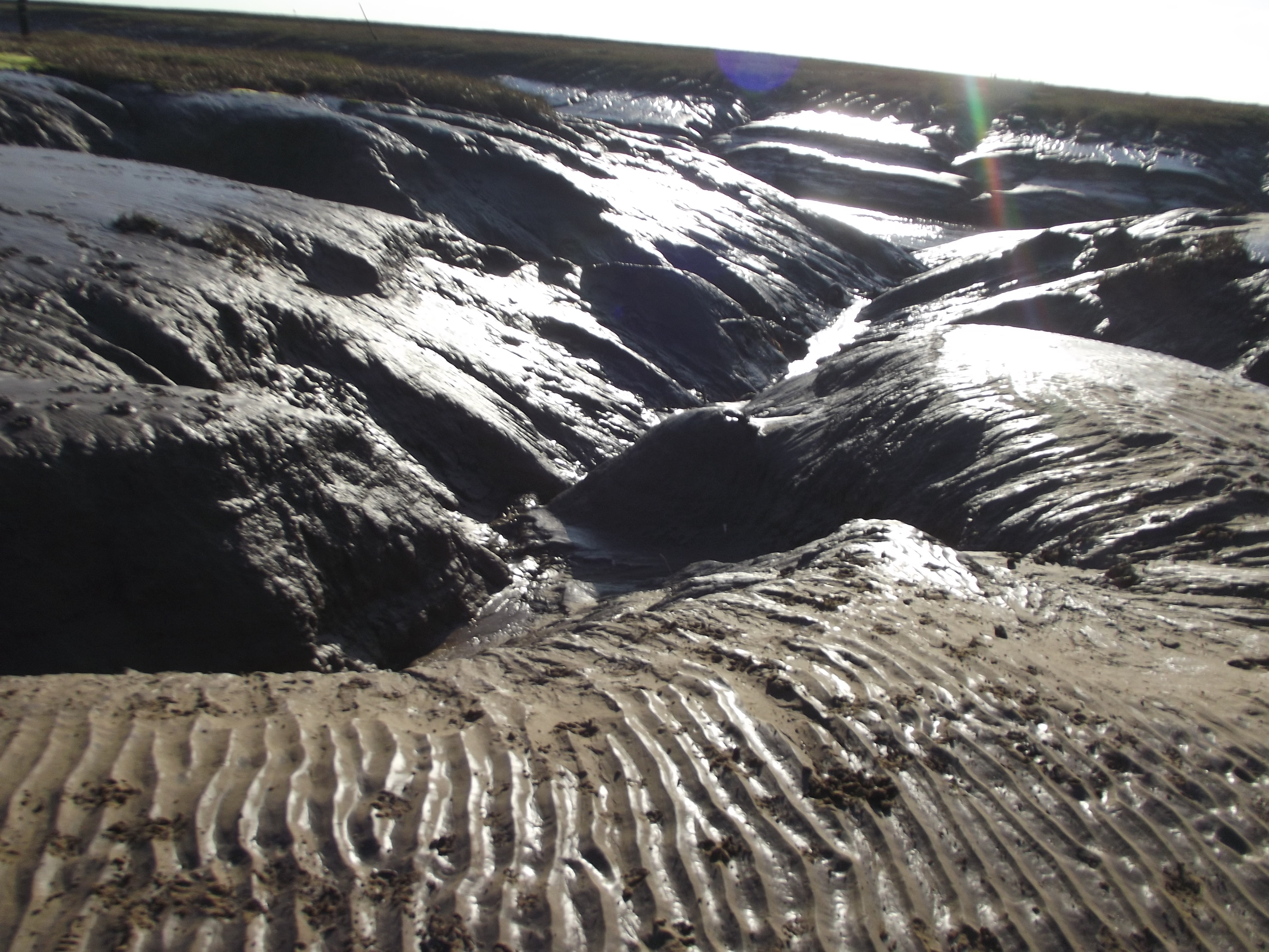 Down on the beach, where the River Axe runs into the Bristol Channel in Weston Bay, what used to be called Glentworth Bay, the mud emerges from the sand. It is very dangerous, so many people each year get stuck and have to be rescued, or park their cars which are caught by the tide because of the mud… Can’t they read the many, many signs, DANGER DEEP MUD DANGER!?