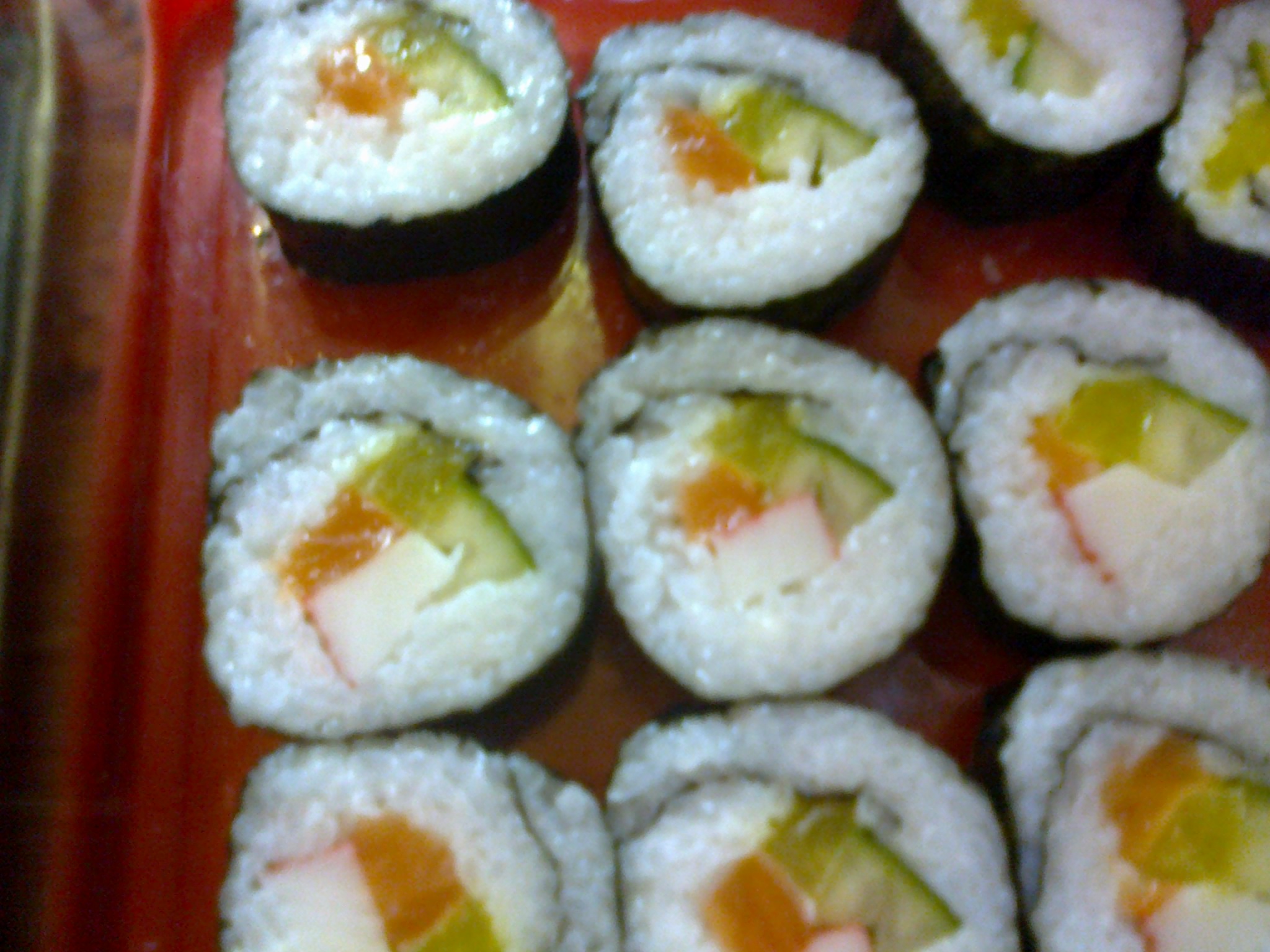 She had made them all herself, some with fish, some with crab, some with just cucumber and pickled yellow radish…. mmmm!