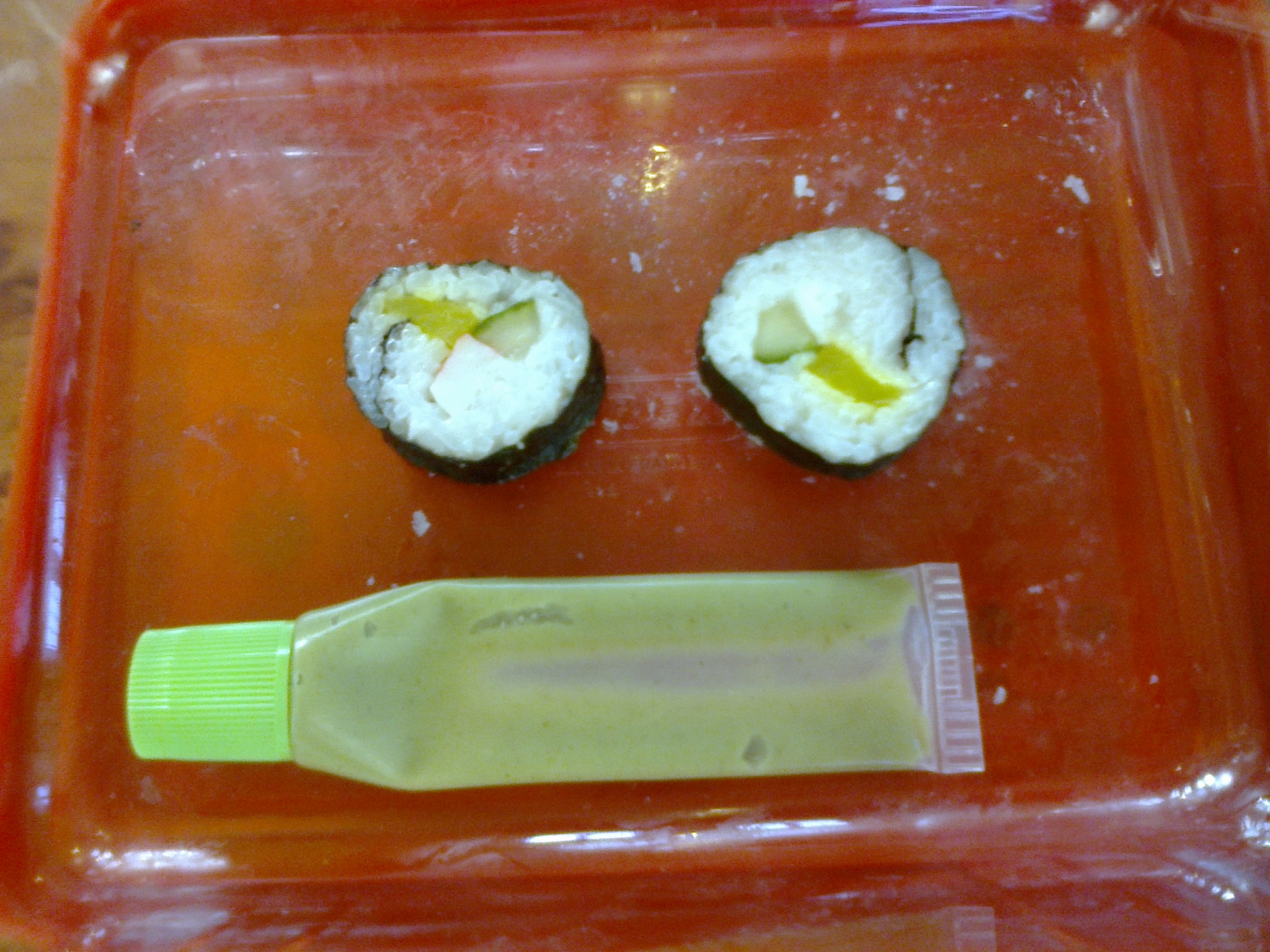 One of the nice things – or should I say one of the many nice things about teaching English to people from different countries is that we get to taste different food! Today Bei Nei brought in some hand-made sushi! Oh how yum!