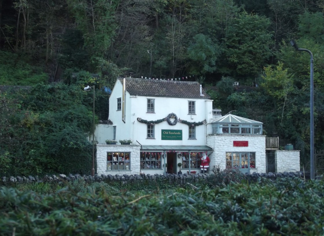 I nearly always carry my camera now, and as a back up I have my phone in case I’ve forgotten it. We were in Cheddar the other day and I saw a house across the river, across the road, set into the side of a hill; it actually is a shop, a Christmas shop, but in the gloomy afternoon it looked so cheerful and welcoming with the lights blazing although it wasn’t dark. I took a photo… one day this house might be the home of some of my characters, without the shop though, but with the friendly lights on an autumn afternoon.