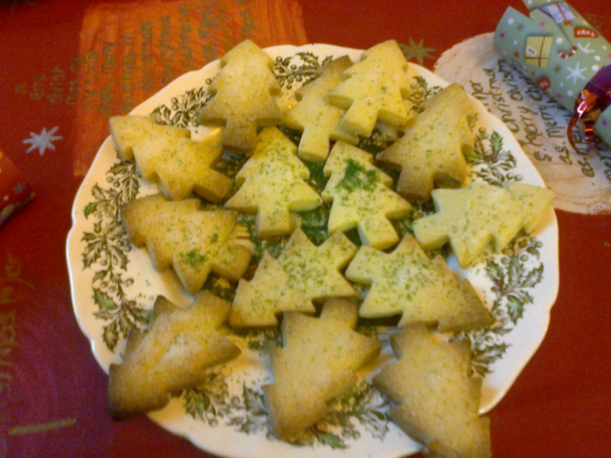 I made some shortbread Christmas trees… unfortunately they got a little browner than I hoped… I was trying to wrestle the top off a jar of mincemeat at the same time!