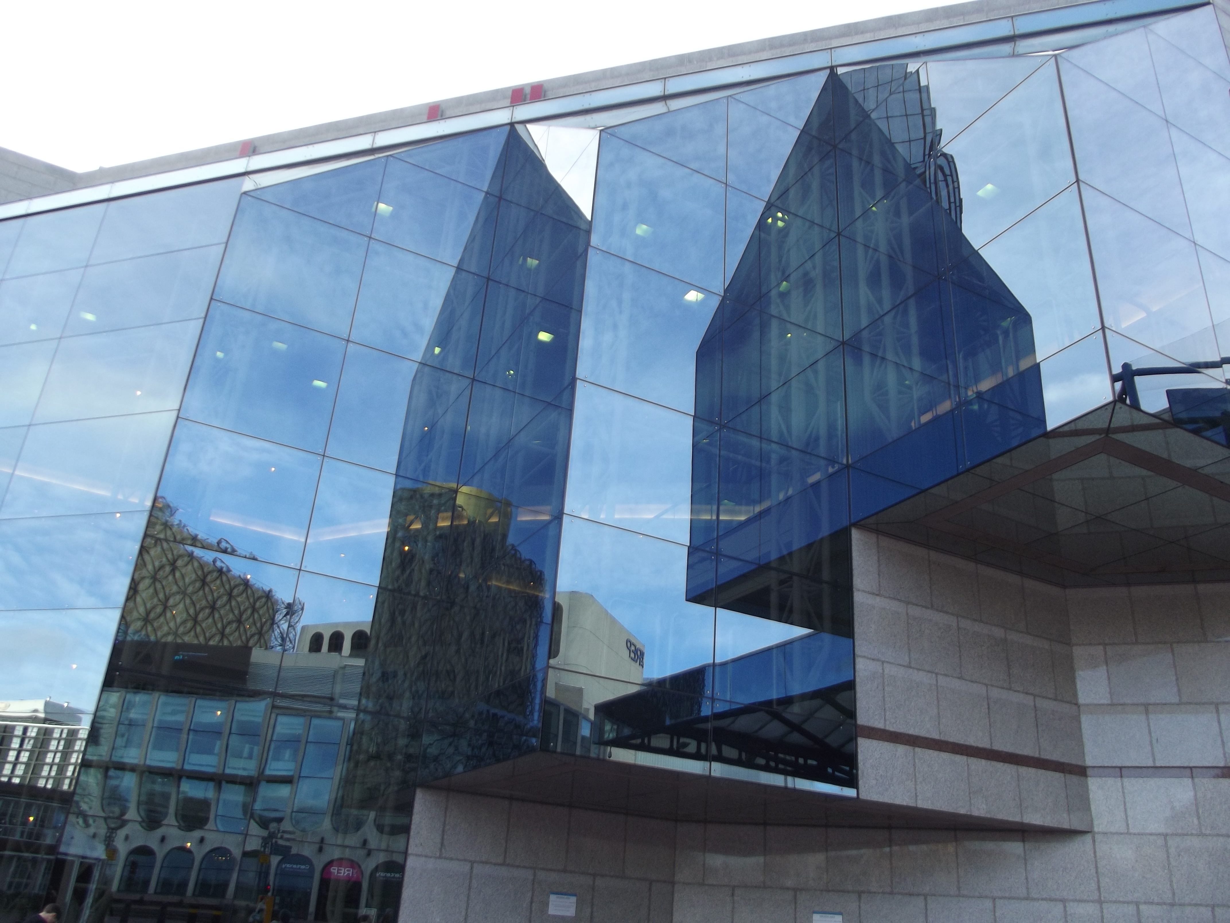 The new library in Birmingham, reflected in the Symphony Hall…