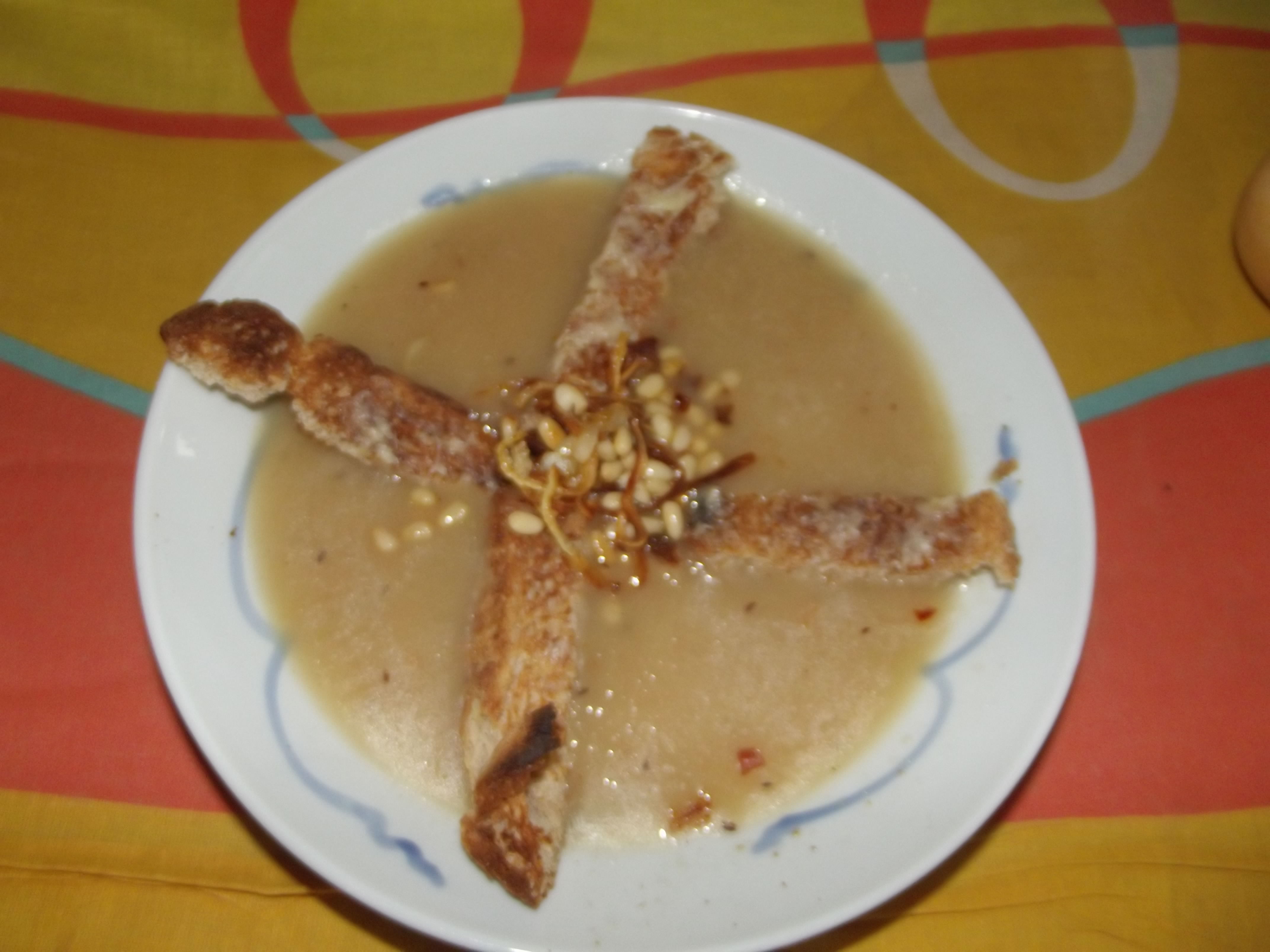 It looks as if I’ve been mean with the serving, but it was rather a large bowl! Onion and dill soup with cumin, and with fried onions and pine nuts… it was really tasty (I added some chilli sauce in my bowl!)
