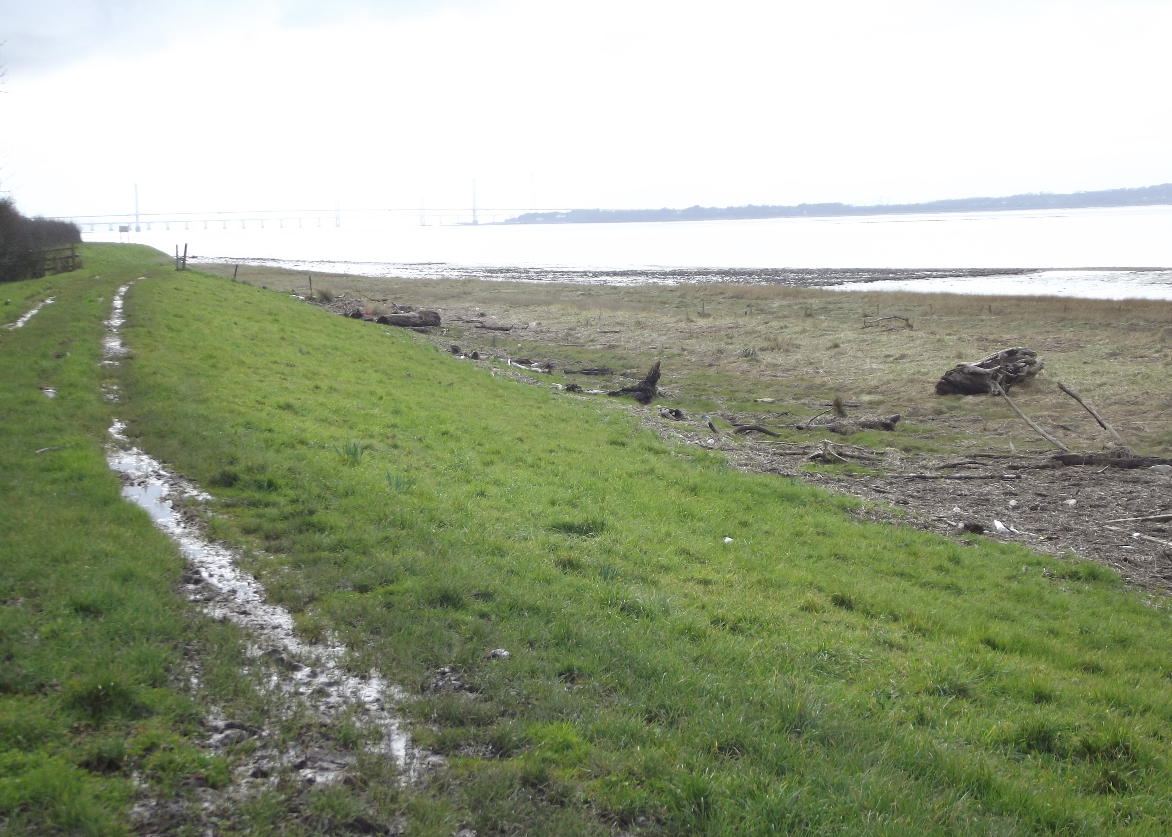 We were standing on the banks of the Severn, not far from Shepperdine and Nupdown. We were looking down stream, on the left of the picture towards the Bristol Channel. It’s too misty to see but on the horizon are the two Severn bridges, the suspension bridge built in 1966 and now Grade 1 listed (meaning it is of architectural and historic value) and a cable-stayed bridge built in 1996. The land across the water is Monmouthshire and Gloucestershire, where Wales and England meet. The building on the left of the picture is a boarded up pub with ‘sold’ signs plastered across it, which was called the Windbound. Windbound is a ship which can’t move because of the direction of the wind, so I suppose the pub was ‘windbound’ because it didn’t move, but I’m not sure it was a very positive name for it!