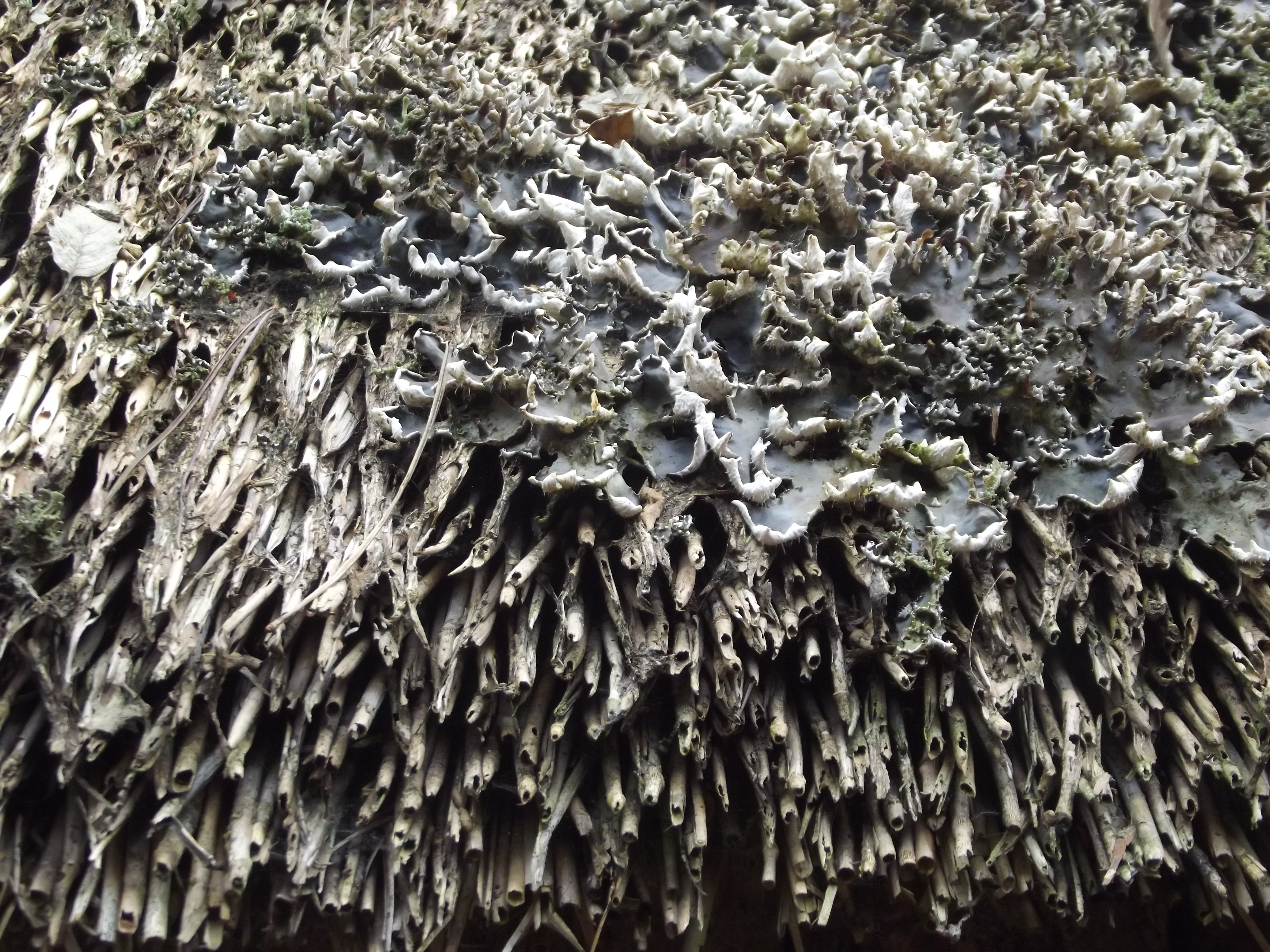 … but look at this strange grey-black stuff growing on a thatched roof! I have no idea what it is, I will have to investigate!
