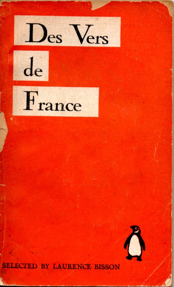 Des Vers de France, selected by Lawrence Bisson was published by penguin and when I looked through it to find out when, I came across this little paragraph at the front which begins: “owing to copyright during the present emergency…” I wondered what emergency and looking more carefully I came across another little note: “leave this book in a Post office when you have read it, so that men and women in the services may enjoy it too.” This made me think it was published during the Second World War.