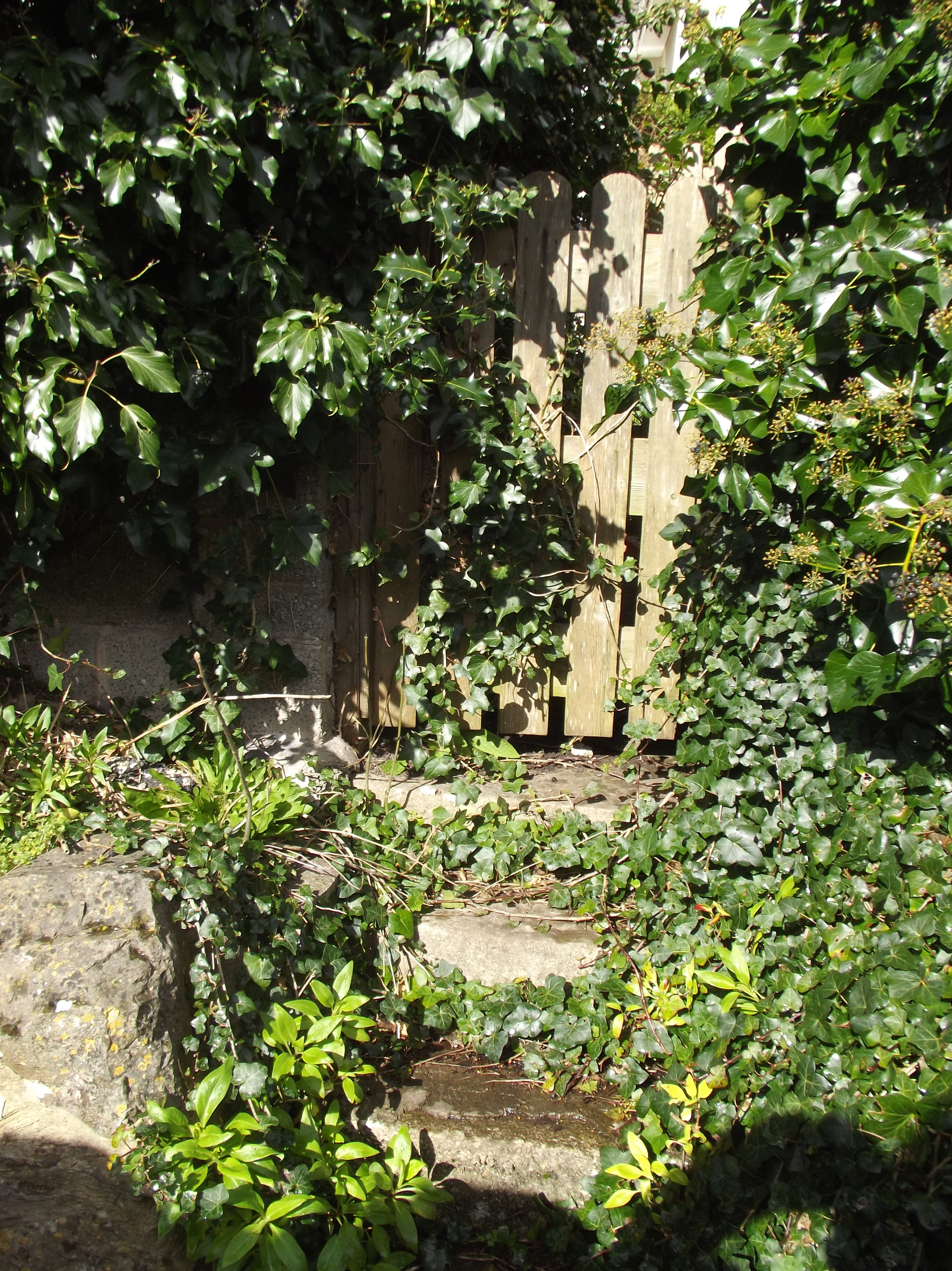 Don’t you just want to go up this couple of steps, taking care not to slip or trip on the ivy, and don’t you just want to look over the gate and see what is beyond? A neglected cottage, or a pretty garden, loved and cared for, and only this gate no longer used. It looks benign, but looks can be deceptive…