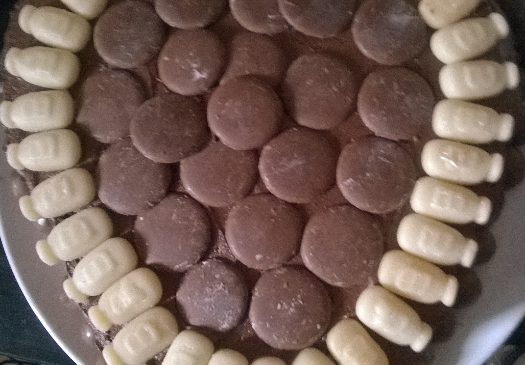 If I had submitted my recently made birthday cake to the judges in the great British Bake-Off I think comments may have been made that it was a little dry, that the icing was too sticky, that the decoration (giant chocolate buttons and jelly milk bottles) was too simplistic and not home-made… but I was baking this for my daughter and luckily she loved it!