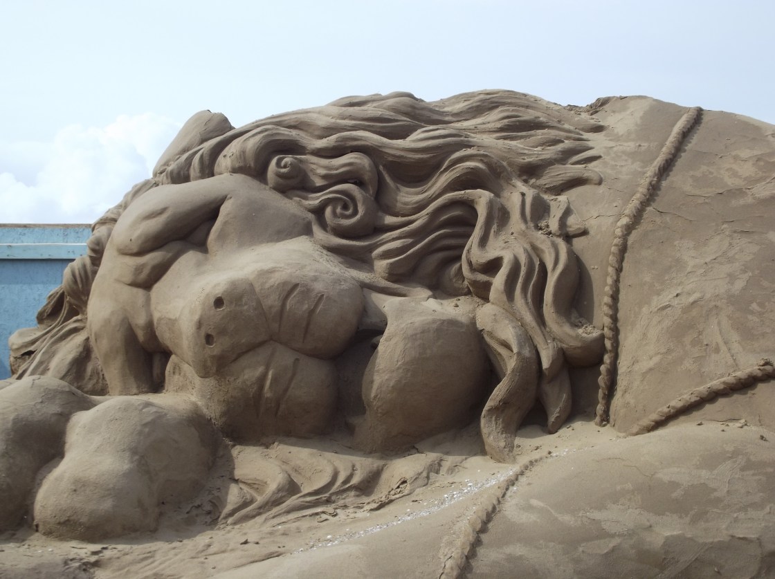 The pieces are made just from sand and water, no chemicals, no sprays, no artificial holding agents, just sand, water and skill. I was amazed by the expression and feelings put into the works, and how something as tricklesome as sand can be formed into the most wonderful, and in a way, quite moving, sculptures.