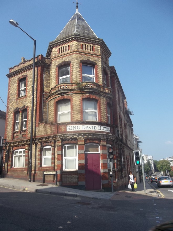 The King David Hotel in Bristol, no longer a hotel, was built in 1893, and you can see it is rather an attractive building of red and yellow bricks. it’s three stories high and was open until the 1990’s when it was taken over by Bristol Hospital. It is built on the site of a much older hostelry, the King David Inn. The building is at the bottom of St.Michael’s Hill, and was designed by William Gingell, an architect who designed several of Bristol’s turn of the century buildings.