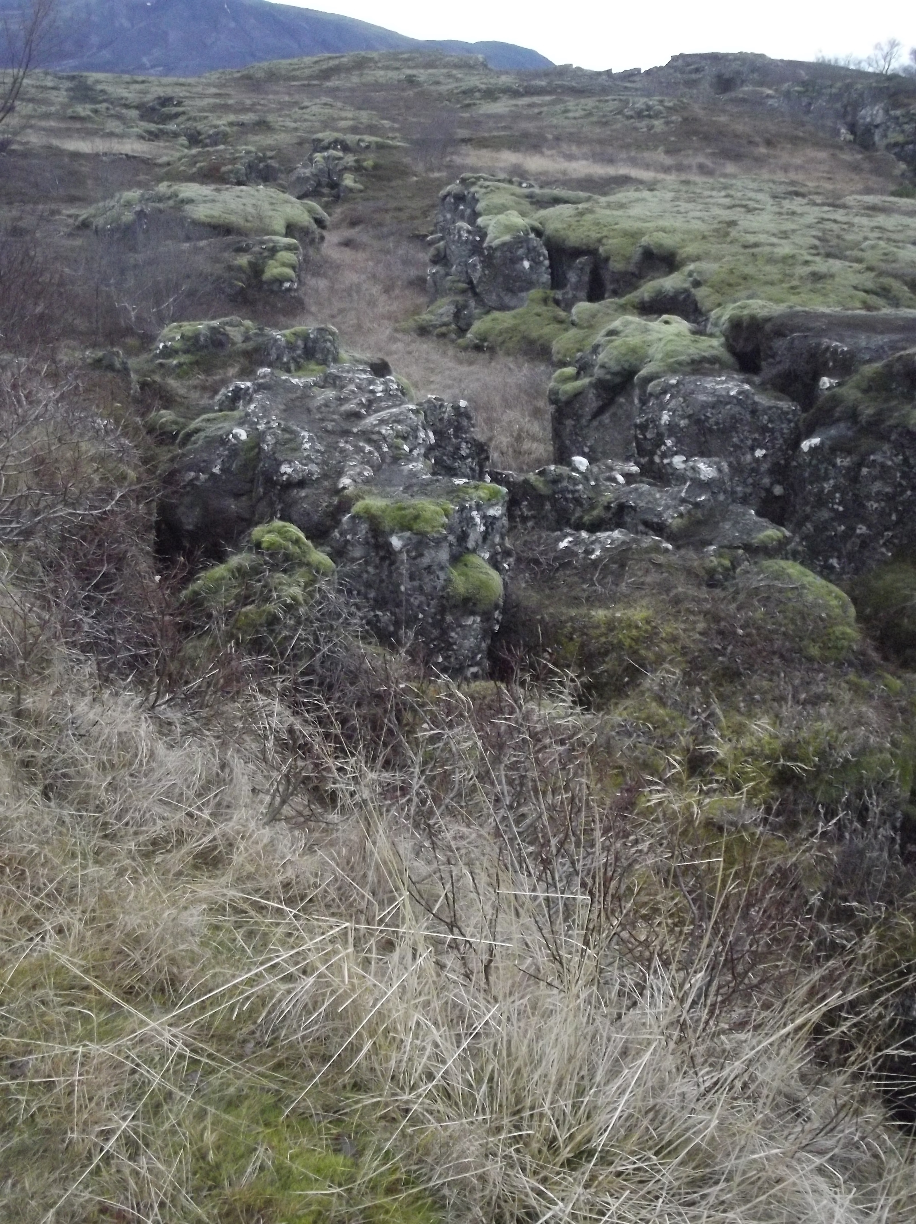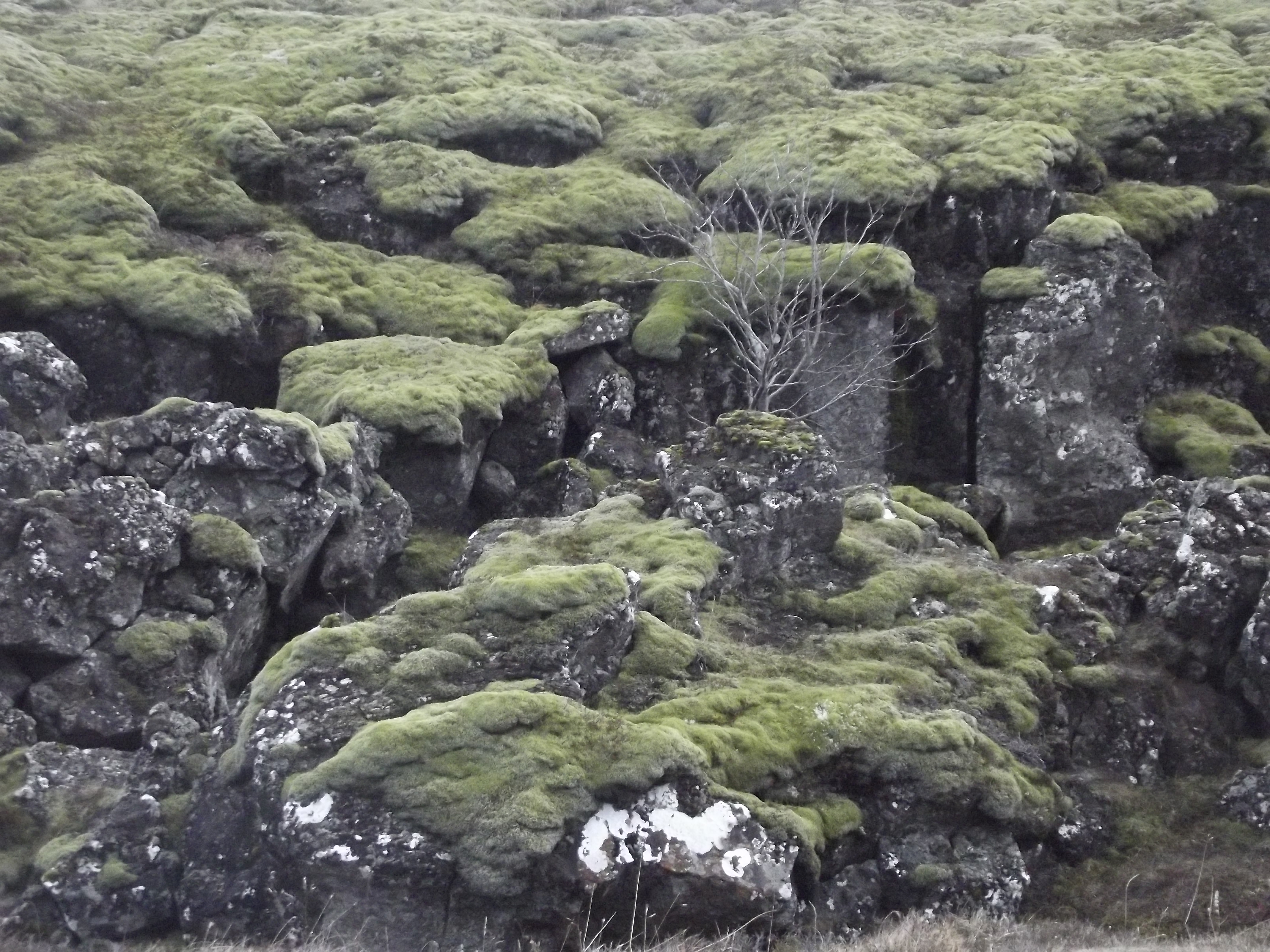 When we went this time, even though there should have been snow at this time of year, none had fallen except on the mountains. Everywhere the grass was a sort of tired yellowy green, but the lava fields were covered in vivid mosses! I did not see much lichen, but the moss, growing like great billowing cushions was everywhere. It made the stories and legends and sagas I have read suddenly come to life… DSCF7796… and I could imagine the old heroes and warriors in this dramatic landscape!
