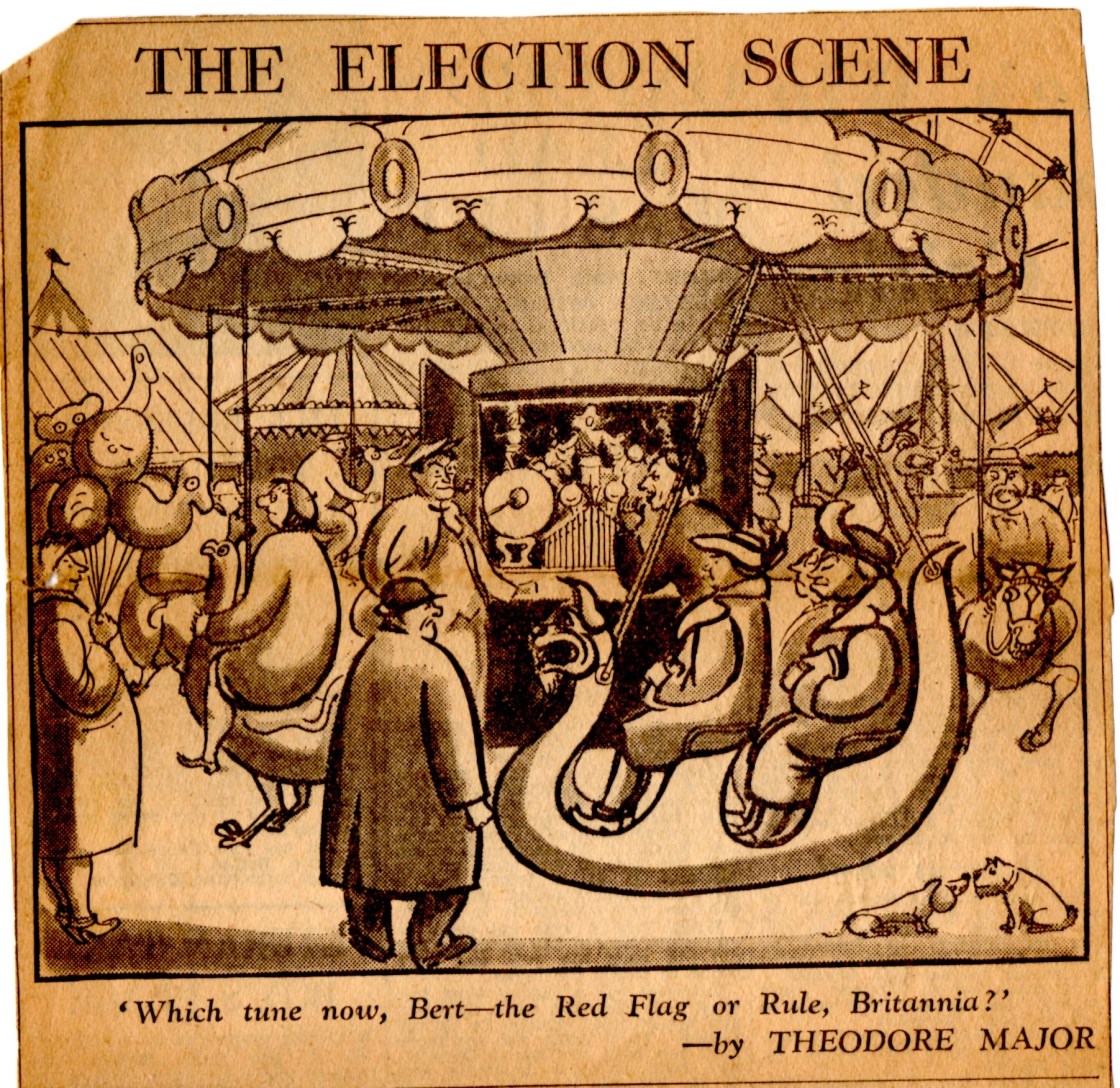 I don’t know how long Kitty had it for, but there was a political cartoon by Theodore Major cut out and popped between the pages. I can’t at the moment date the cartoon, or the election it refers to, but on the back of the cutting are some sports reports, so maybe with a little luck and perseverance, I might find the date of the rugby game between Oxford University and Leicester; ‘Playing delightful rugby with a succession of brilliant passing movements, Oxford University with two England selectors looking on, beat Leicester by a goal…’ the report continues ‘But Leicester rallied splendidly. Their forwards who had been strangely lethargic, suddenly roused themselves…” The horse race where Shaef, Armoured Knight and Possibly all competed. ‘However, the grey cracked along over the last three fences to pass the entire field’ the correspondent reports.