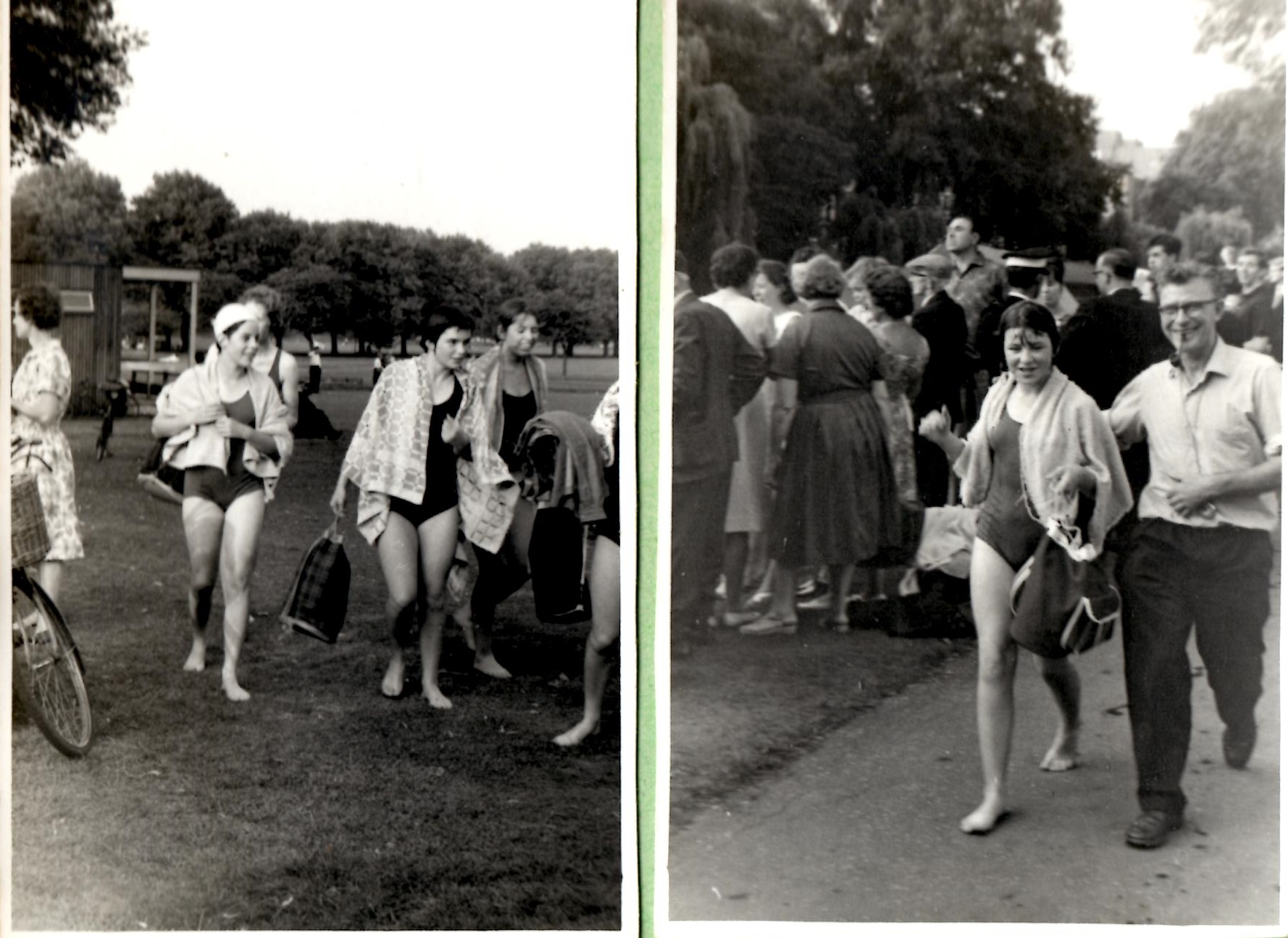 The end… me and Deborah Yoffe who is wearing the cap – I hated caps and always swum bare-headed, and my sister with my dad walking proudly beside her.