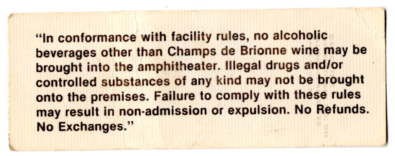 As well as The Alarm, he was supported by a young singer songwriter, Tracy Chapman. I had already heard her, and may have got her LP, certainly I did have her album but I’m not sure now whether I bought it before or after I saw her. Although she was American, born in Cleveland Ohio, my American friends didn’t know her. The concert was at the Champs de Brionne vineyard, and we were sitting up on the hillside of the amphitheatre on rugs with a big picnic, including various alcoholic beverages concealed in soft drinks such as coke… how naughty we were!