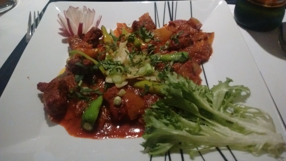We had the usual popadoms and bits while we were waiting and our favourite Bangla beer. Our meal arrived and it looked amazing! what impressed us as well was the lovely presentation, and the modern and contemporary crockery – yes I know you don’t eat the actual plates, but it just set the meal up to be nicely presented. I had a Southern Indian mutton thing with lots of chillis, and spinach and chick peas and a couple of chapatis. My husband had a chickeny thing which to me was quite sweet, but he loved it, it was very coconutty and fruity and he had it with mushroom rice. My son had an enormous meal of chicken and minced lamb with egg… and he managed to eat it all!!