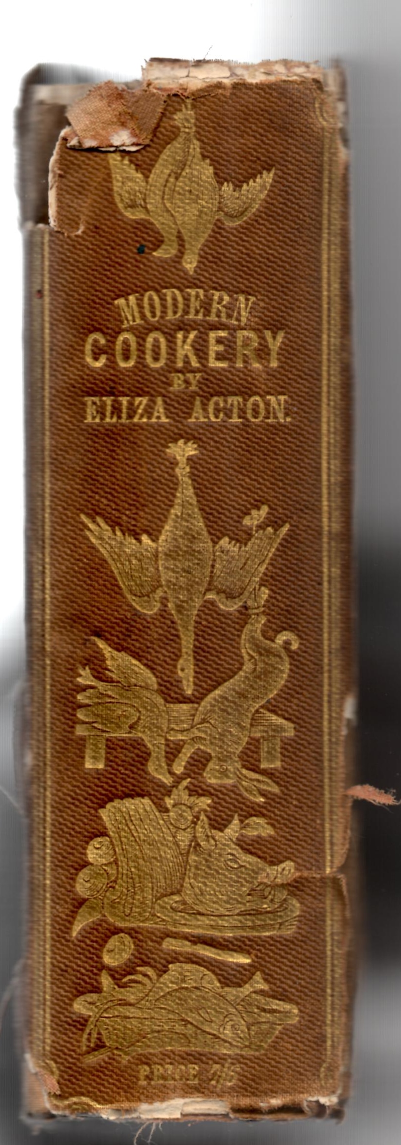 The cookery book which Marcus had given me was a small stout volume, Modern Cookery by Eliza Acton. It had a faded brown cover, with a few marks and stains on, no doubt from being used and it certainly looked well-used, which was rather amazing because whoever had used it might be my own family!