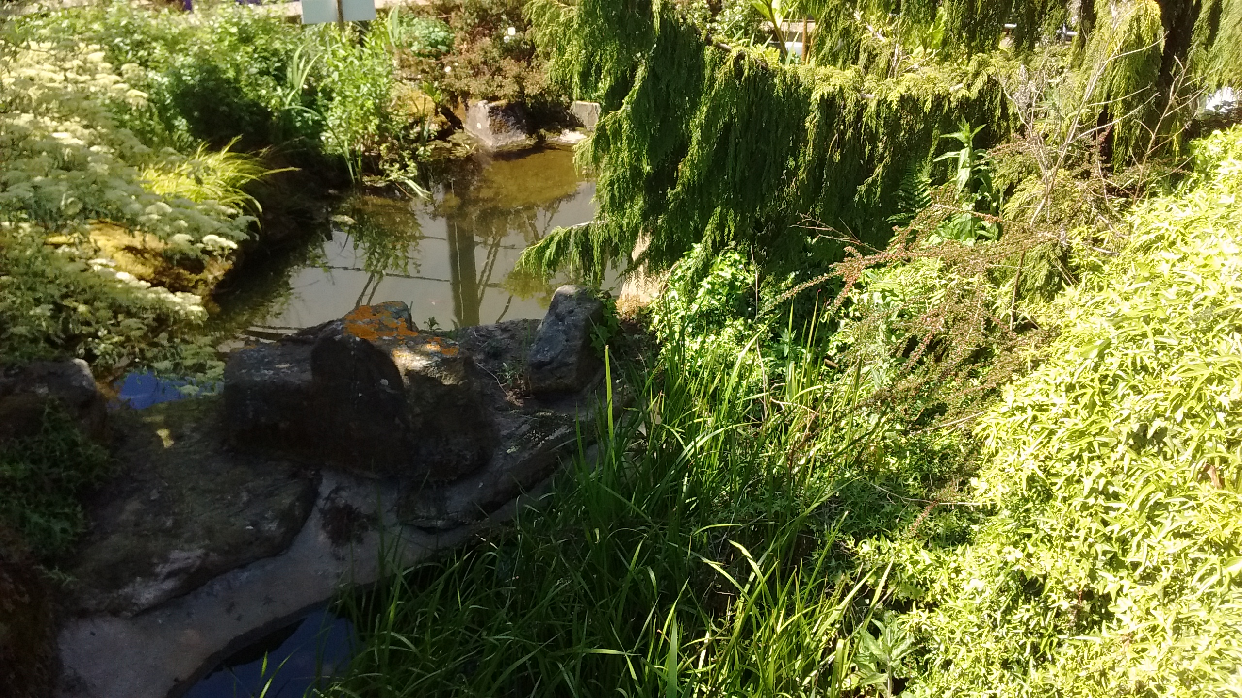 This is only a little pool, a little display pool in a garden centre, but somehow, with the sunshine and the reflections on its surface, it was quite enchanting. A wider photo would have shown people passing by with trolleys full of plants they had chosen and were about to pay for; it would have shown tarmacced paths and litter bins and signs to the café and the tills… but this picture just shows a tranquil little pool.