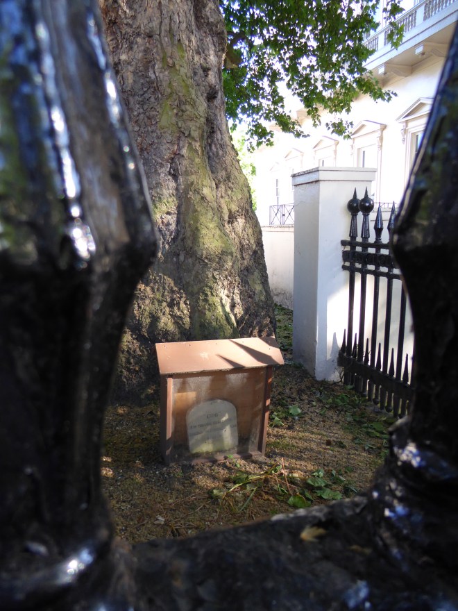 This the gravestone but not the grave for a little dog, much adored by his owner, who was buried in the back garden of the German embassy, having been electrocuted by chewing through a cable. Giro’s owner was Leopold von Hoesch, German Ambassador to London. Von Hoesch was born in 1881 and was a professional diplomat, first in pairs, and then in London where he moved in 1932 with Giro his pet terrier. Poor Giro met his end in 1934, and so did von Hoesch in 1936. Von Hoesch was a popular man in London’s highest circles, despite being a Nazi, and he had a rather magnificent funeral cortege escorting his body on its last journey back to Germany.