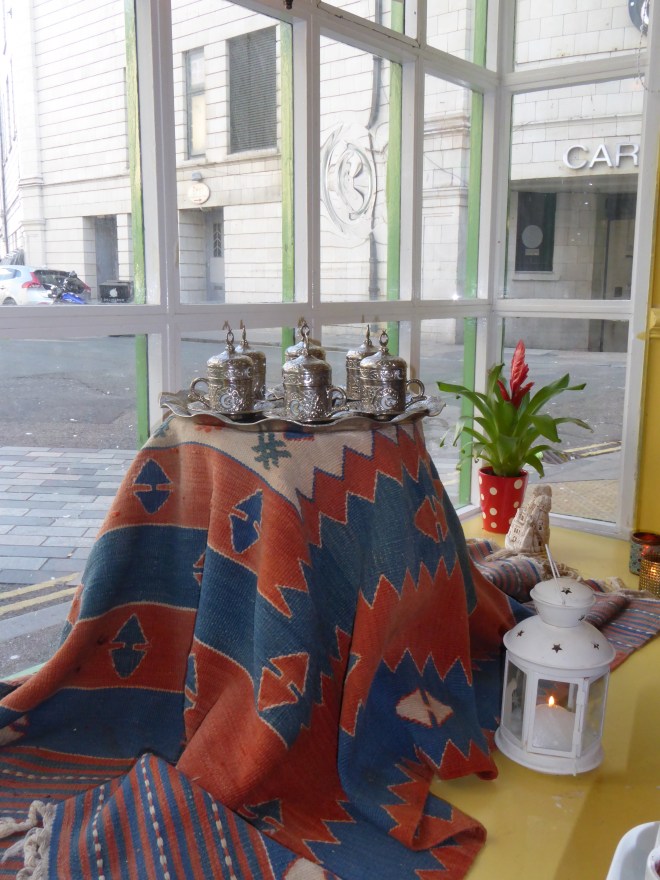 If you are in Brighton and want something to eat, I recommend a fabulous Turkish restaurant just near the little bus station… actually I’m not sure if it actually is the bus station, or whether it’s just somewhere the coaches pulling to disgorge their passengers, but there was a lot of coming and going, departing and arriving as we sat by the window of the Turkish Villa.