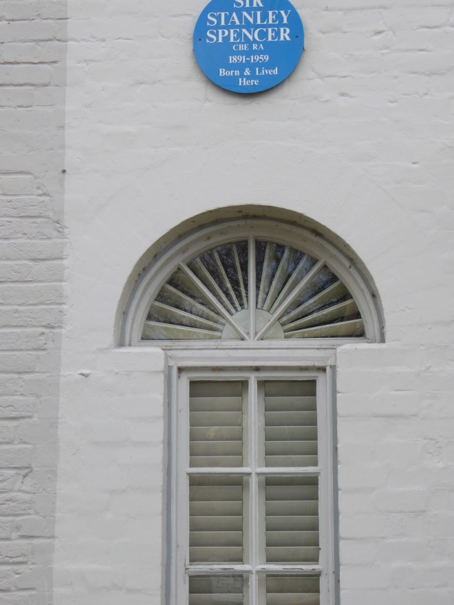 I didn’t know very much about Sir Stanley Spencer when we visited Cookham a few days ago, and that was pert of the reason I wanted to go, to learn more. I would be able to recognize his work and had a rough idea about the strange mixture of religious and sexual imagery in his paintings, and I knew he straddled the nineteenth and twentieth century, but that was about it…oh, and that he lived in Cookham… which I thought was in Sussex…
