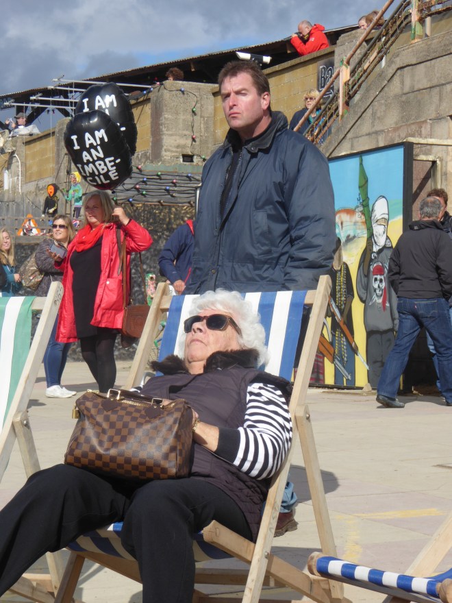 Other people were waiting, including a man and his son sitting on the wall a little bit away from us. He made some friendly comment to my husband, who replied in a similar vein, then the man began a conversation about his son, and whether we had children… fair enough. Then he got up and came and stood in front of us and began to ask about the age of our lad, and whether he’d given us 50% pleasure and 50% pain – which I thought was a bit odd, but we said no, it was 99% pleasure. I was patently trying to read but he kept talking… friendly I guess, but a bit intrusive I thought. He asked if we were older parents (well, obviously) and then shook our hands, giving quite a strong handshake… again, it just seemed a bit odd.