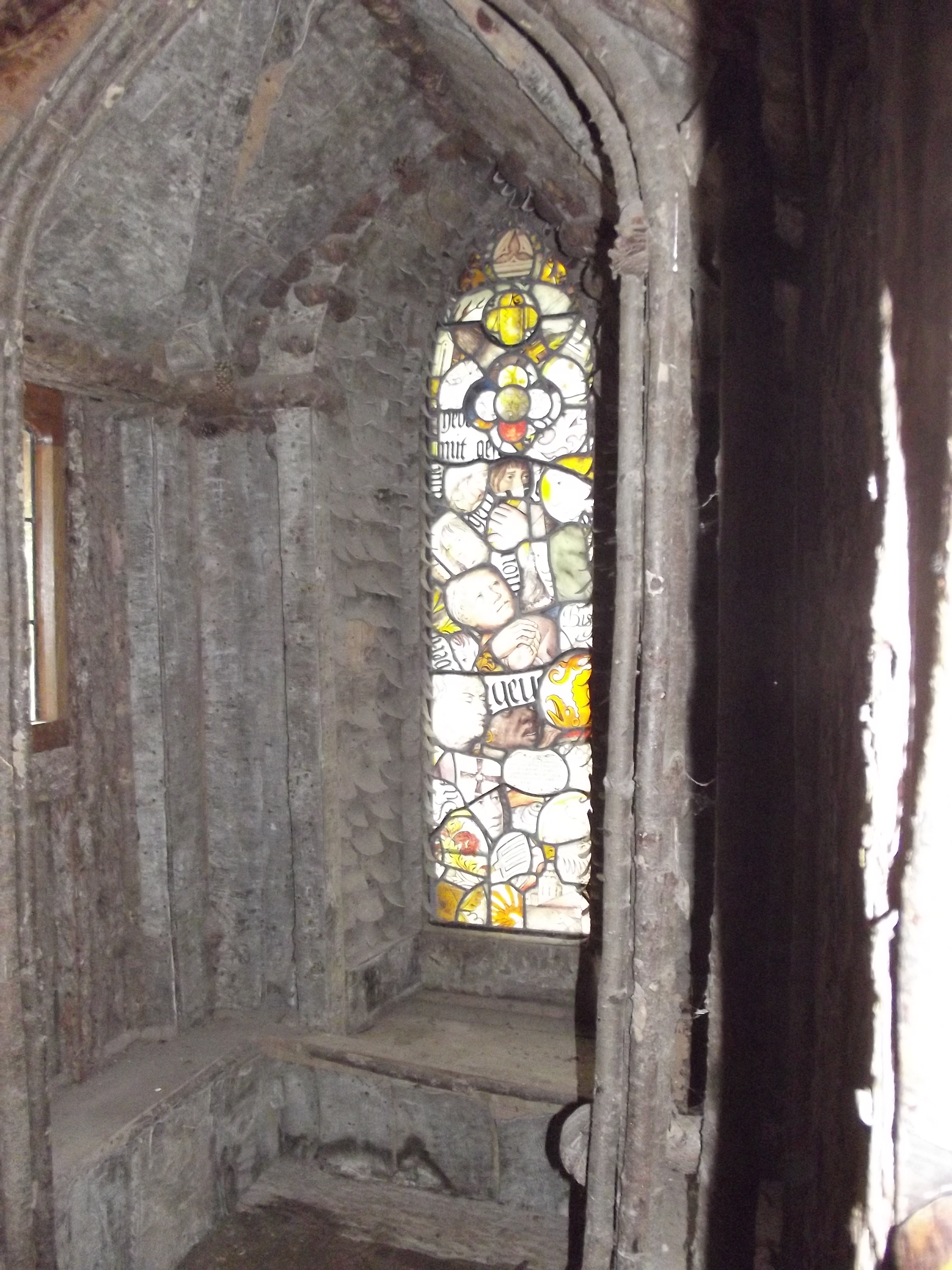 There is a stained glass window in the back parlour… or maybe this was Tom’s bedroom?