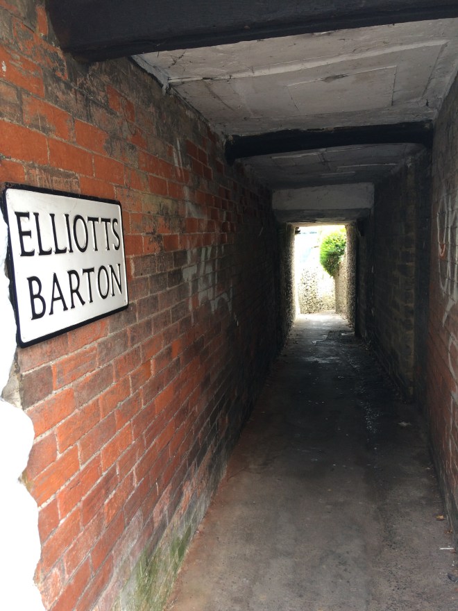 One of the feature of the town are ‘the bartons’; I saw these mentioned and wondered what they were, thinking back to people I knew – as I mentioned above. Bartons, as we discovered, were originally alleys which led down from the main street to holding pens for livestock. Bruton was an important market town, with sales of sheep and livestock held regularly. Now the bartons are just little alleys leading down to the Brue which was pottering along quietly today, no risk of any floods. I wonder if the surname Barton originated for some families from the bartons of Bruton?